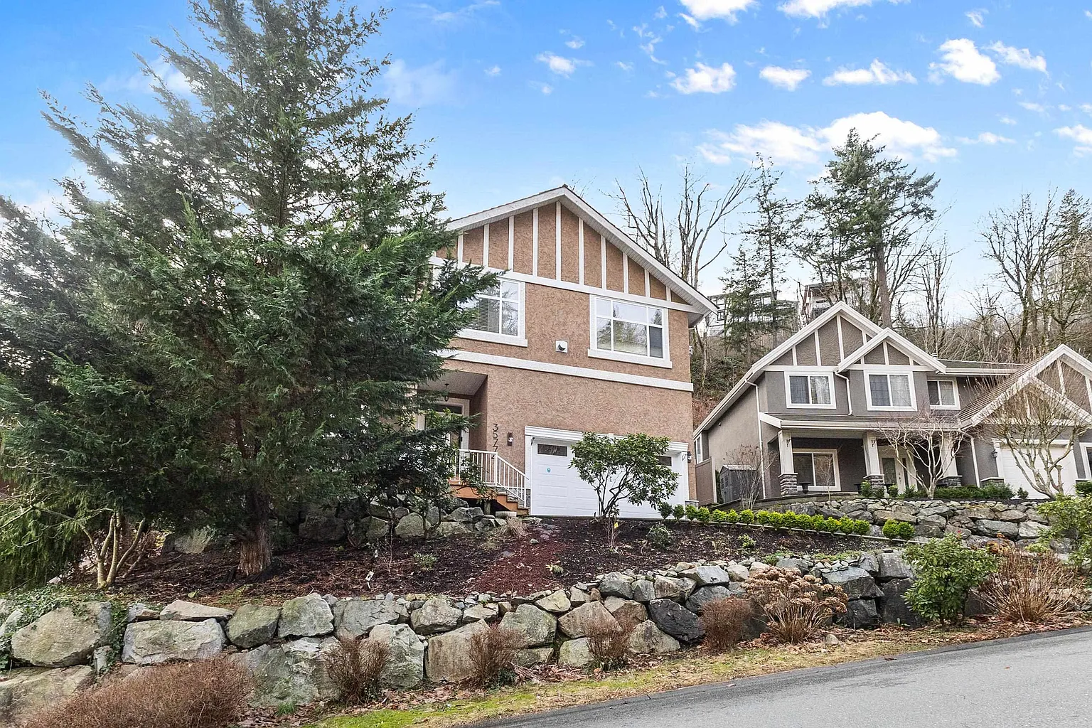 Welcome to this beautiful 2-storey home in the desirable and quiet East Abbotsford neighborhood, offering stunning mountain views and exceptional space for the whole family. Featuring 5 bedrooms and 3 bathrooms, including a bright 2-bedroom above ground suite, this home is perfect for extended family or mortgage helper. The main level showcases vaulted ceilings, rich hardwood flooring, a spacious living room, and a well-appointed kitchen with stainless steel appliances and excellent workspace. Enjoy cozy evenings by two natural gas fireplaces. Generously sized bedrooms provide comfortable living throughout. Step outside to relax on private patios or unwind in the hot tub, all set on a large 13,500 sq ft low-maintenance lot. Dbl Garage.
