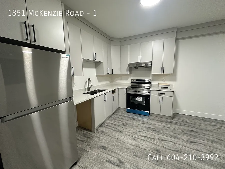 One Year Lease Required Security Deposit: Half Months Rent Brand new 2 bedroom, 1 bathroom basement suite. Shared laundry available. to book a viewing. Reference the address: "#1-1851 McKenzie Rd"
