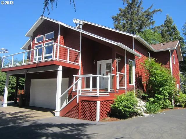 Impeccably maintained custom home on private 1/2 acre lot just minutes to beach and bay. 3 bed/2.5 baths + den. Vaulted ceilings, hardwood floors, large bedrooms, open kitchen and living w/ fireplace. Gracious ocean view deck off dining perfect for sunning and BBQ'ing! Outdoor hot tub. 775 SF garage with utility sink, shower and Finlandia sauna! Paved parking for boats and RV's