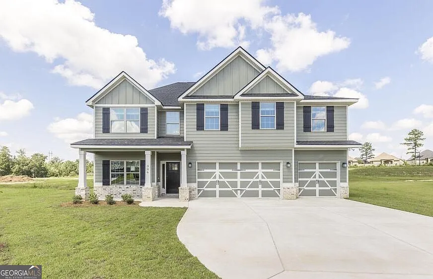 A charming Hughston Homes community nestled in the heart of Bonaire, Georgia, Magnolia Flats has everything you need to make your home truly feel like home! The Belmont A plan is a Favorite with 3158 SF of Living Space. Entry Foyer, Formal Dining, Spacious Great Room, Luxury Kitchen & Breakfast Area, Media Room, 5 Bedrooms, 3 Baths, THREE Car Garage & Signature Gameday Patio perfect for Outdoor Entertaining! Many Included Home Automation Options and Tons of Included Luxury Features! Two Story Entry Foyer, Formal Dining w/ Coffered Ceilings & Wainscotting. Spacious Great Room w/ Wood burning Fireplace. The Gourmet Kitchen includes Ample Quality Cabinetry, Quartz Countertops, Herringbone Tiled Backsplash, Built-in Stainless Appliances, Gallery Gas Cooktop, Single Wall Oven, Built-in Microwave, Stainless Vent Hood, & Luxury Dishwasher! Large Kitchen Island, Breakfast Area & Walk-in Pantry for additional Storage. Owner's Entry w/ our Signature Drop Zone. 5th Bedroom & Full Bath conveniently located on Main Level. Upstairs leads to an Expansive Media Room, perfect for 2nd Living Area. Huge Owner's Suite w/ Sitting Area, Owner's Bath w/ Tile Shower, Garden Tub, Vanity w/ Quartz Countertops & Gigantic Walk-in Closet. Additional Bedrooms are Spacious & Bright. THREE Car Garage & Signature Gameday Patio perfect for Outdoor Entertaining! Tons of Included Features, such as Spray Foam Insulation, Gas Tankless Water Heater, 2" Blinds on Front of the Home, Gourmet Kitchen, our Signature Gameday Patio & Quality Craftsman Style will set us apart.