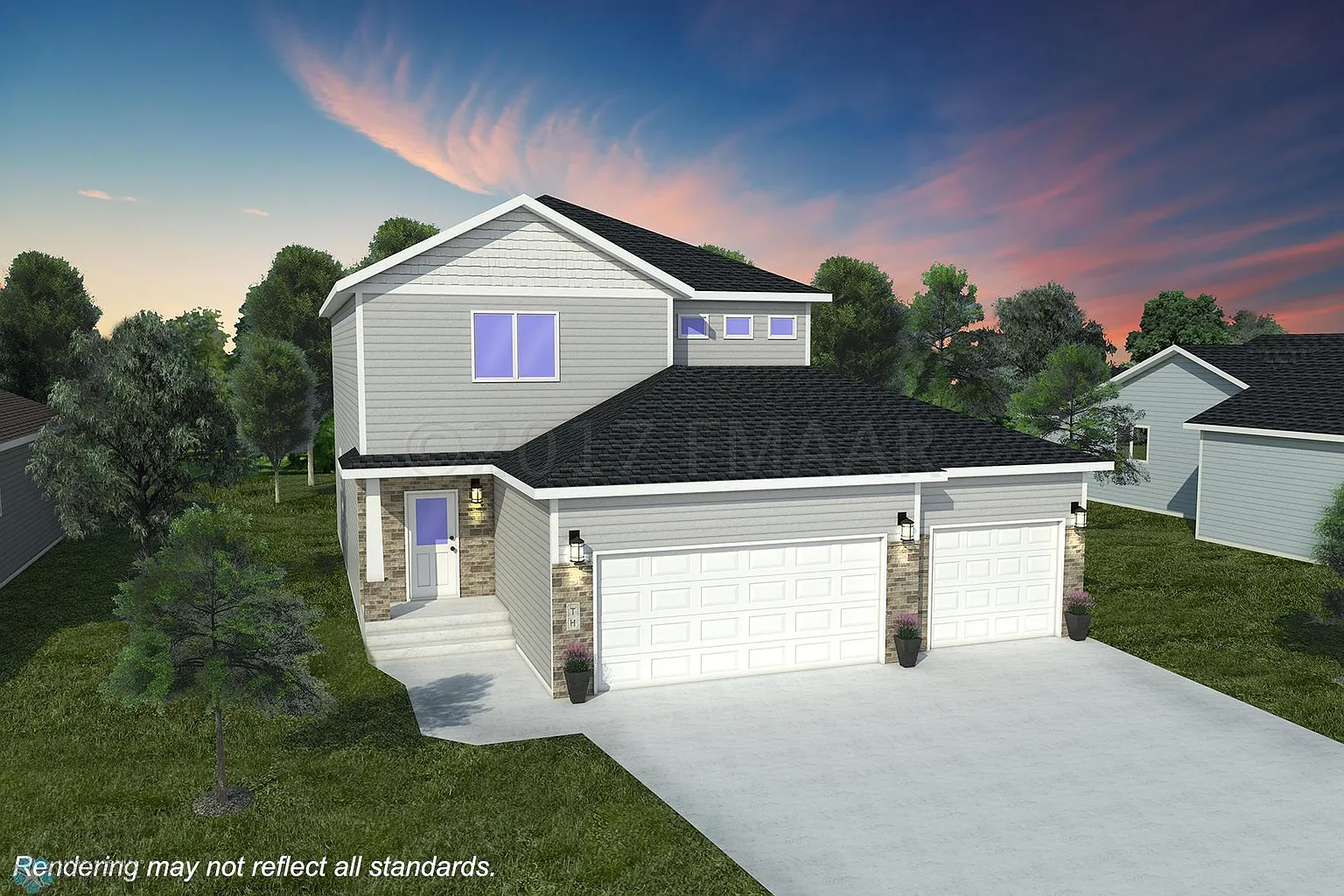 Under Construction 2086 Classic 2-Story 3-stall includes Sod, Patio & Appliances! Upper level has 3 bedrooms, 2 full baths, & laundry room. Spacious master suite has a huge walk in closet, private bath & transom windows. Main level has open floor plan, & granite island. Basement is unfinished with space for a family room, 1 bedroom, & 1 full bathroom. View model home at 1938 75th Ave S, Fargo. Owner/Agent