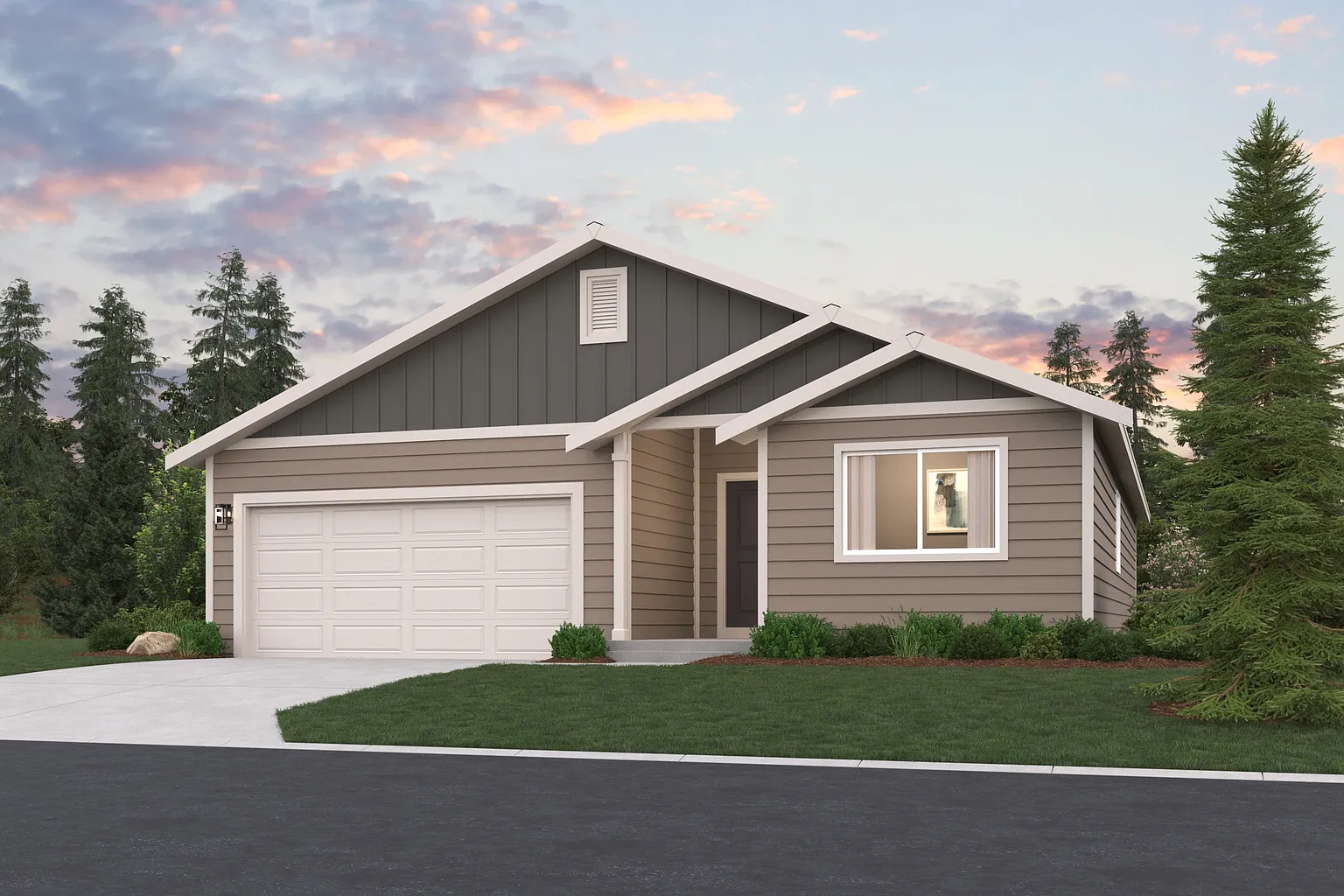 The expansive Sutherland floor plan offers stylish design and modern features. An open kitchen with an island and a walk-in pantry overlooks a dining area and a spacious great room, both boasting access to a large covered patio. The primary suite is adjacent, showcasing a walk-in closet, a linen closet, and a private bath with dual vanities and a walk-in shower. Two secondary bedrooms flank a bathroom for additional sleeping space.