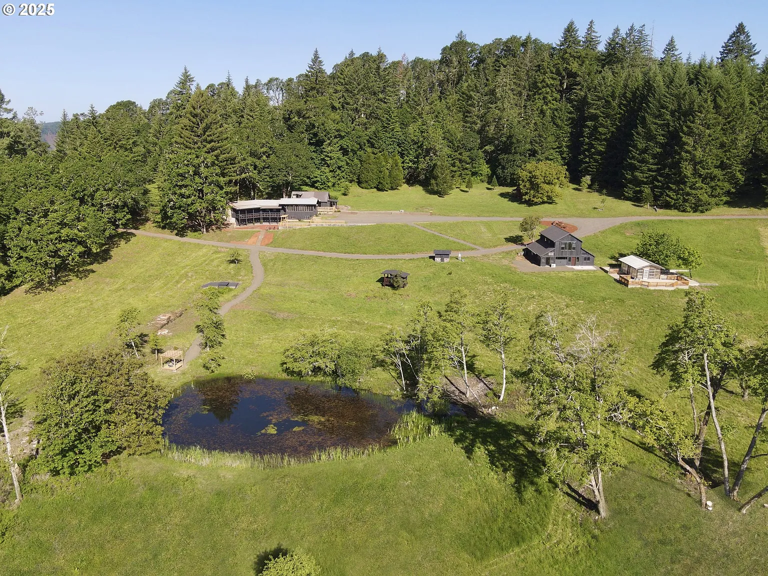 387 acres comprised of 5 parcels with multiple homes totaling more than 7000sf with 8 bedrooms & 6 bathrooms and sweeping views of Mt. Hood, Mt. Jefferson, Three Sisters, rolling Willamette Valley farmland, and surrounding timberland. Steve Jobs once lived on the property and spent time working in its apple orchard which is widely credited as the inspiration for the naming of his company, Apple. The fully remodeled 5,200+ sq ft main residence features 4 bedrooms and 4 bathrooms and showcases a rich & diverse palette of wood species and custom-crafted features. There is expansive decking, patio areas, & outdoor living spaces overlooking a pond, pasture, & trees. Large barn with ballroom floor, independent heating, & full bathroom next to a greenhouse with a large concrete patio. Cabin with water and electricity where Steve Jobs once stayed. The fully remodeled guest home features 4 bedrooms, 2 bathrooms, and expansive territorial and mountain views. The land itself is a blend of forested, cleared, & pasture areas with most soils rated as "prime farmland." Abundant wildlife and excellent hunting opportunities for elk, turkey, deer, bear, & cougar. This storybook estate offers exceptional versatility and could serve as a legacy homestead, corporate retreat, hunting lodge, vineyard or winery, or a strategic investment that leverages both the property’s history and its multiple parcels and structures. Ideally located in the heart of the Willamette Valley, just over an hour southwest of Portland and approximately 15 minutes from downtown McMinnville. Owner financing or other creative financing options may be available, including potential trades for homes, land, timber, or other real estate. While this offering encompasses the full five-parcel estate, each parcel is also being marketed individually and may be purchased separately.