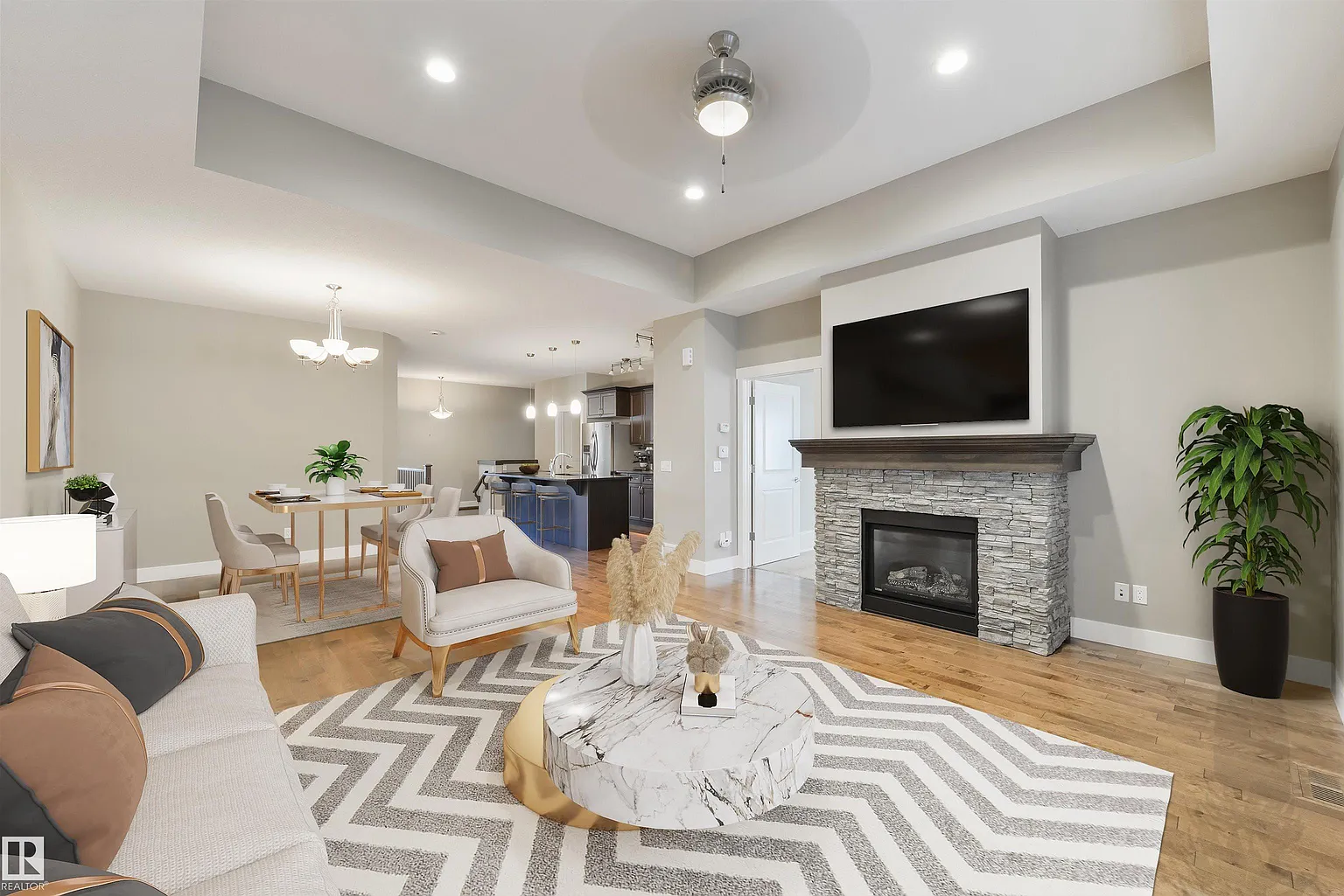 Our analysis highlights open layout, hardwood flooring, and warm-toned cabinetry as key attractions of this home.