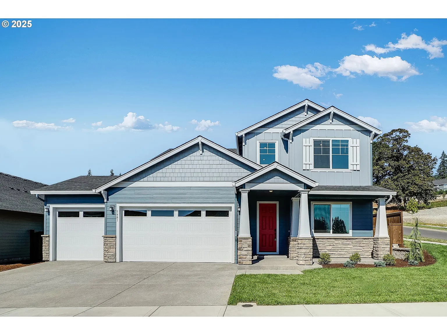 This versatile plan features a full bedroom/bath on the first floor. Upstairs you will find Primary bedroom with a huge walk-in closet as well as two additional secondary bedrooms and a loft. Elegant shaker cabinets w/slab quartz counters & stainless steel appliances, Frig, W/D, and blinds all included!!!!Plus front/rear landscaping with sprinkler, fencing, fireplace & more! Enjoy many luxury features including full backsplash, built-in oven and stove top! Photos are of similar or model home so features and finishes will vary. Taxes not yet assessed. Homesite #5, estimated completion Nov. 2025.