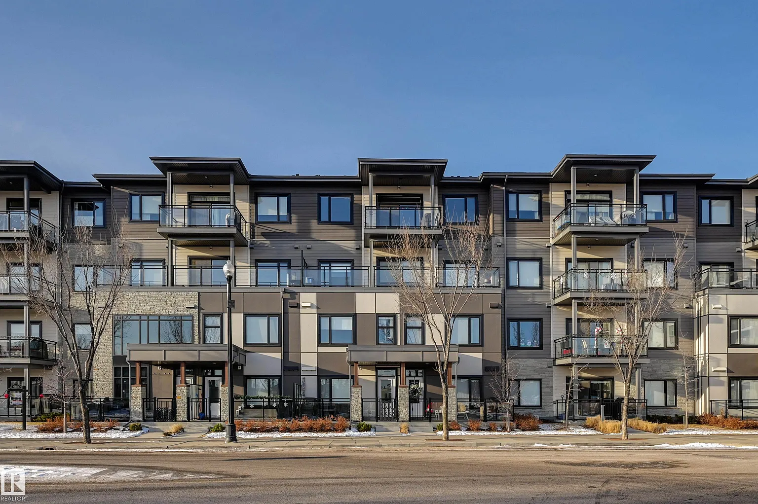 TOP FLOOR UPGRADED LUXURY! This stunning 2 bed, 2 bath + den condo in sought-after Griesbach delivers over 1,300 sq. ft. of refined living with 10 ft. ceilings & premium upgrades throughout. The kitchen showcases quartz countertops, a 4-seat island, full-height two-tone cabinetry, designer tile backsplash, stainless steel appliances, & a custom beverage centre with extra cabinetry. The open-concept living room features east-facing windows with motorized blinds, upgraded vinyl plank flooring, & access to the balcony. The spacious primary bedroom offers a walk-through closet with custom built-ins & a beautiful ensuite. A versatile bonus room is ideal for an office, nursery, or gym. The second bedroom is paired with a sleek 4-piece bath. Additional upgrades include a full laundry room with custom cabinetry, TWO underground parking stalls, and extra storage. Veritas residents enjoy premium amenities: fitness centre, guest suite, social room, & A/C. All just steps from shops, cafes & future LRT.