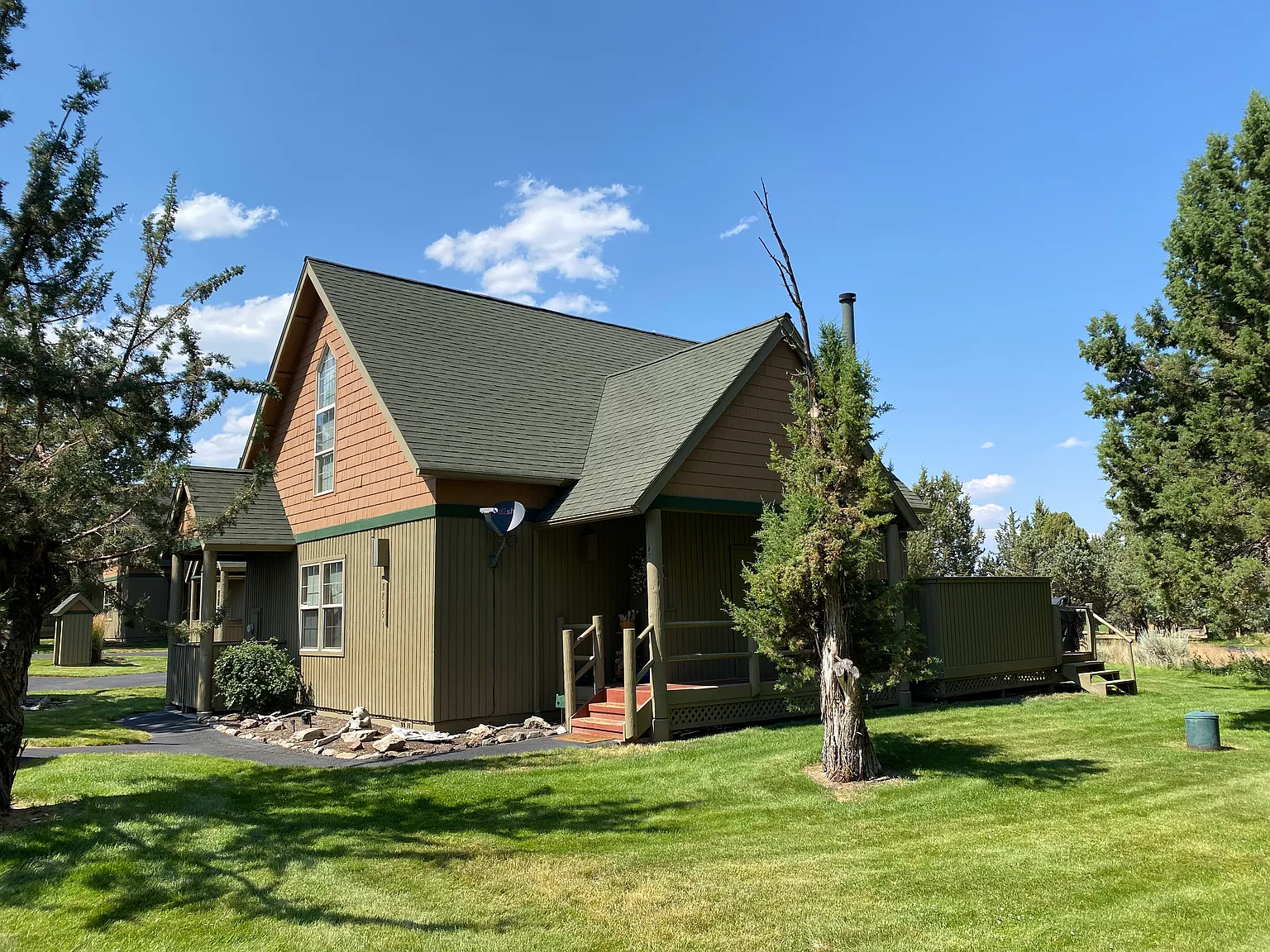 Chalet with golf course views, located on the 18th hole of the Eagle Crest Ridge Golf Course. Experience this quiet resort setting. Residents enjoy access to 3 sport centers with indoor and outdoor pools, hot tubs, tennis courts, pickleball courts, fitness centers, bike trails and more! Large back deck, complete with privately screened hot tub is perfect for entertaining. Chalet features a cozy river rock fireplace, vaulted ceilings and large windows for an abundance of natural light. Stainless steel appliances in the kitchen. Primary bedroom is located upstairs with in-room Jacuzzi bathtub, and has a loft which could be configured as an office. Newer LVP flooring through the living, dining, hallway and kitchen. Monthly hot tub maintenance included in the rent! Amenities Air Conditioning Electric Furnace Gas Fireplace Ceiling Fan Deck Hot Tub Yard Walk in Closet Laminate Floors Landscaping Included Vaulted Ceilings Dishwasher Garbage Disposal Refrigerator Microwave Electric Range Washer/Dryer Provided No Pets Allowed All information deemed reliable, but not guaranteed. Information subject to change, please go to Deschutes Property Management's website for the most up to date information. Equal Housing Opportunity. 6 month lease due to the time of year. A renewal will be offered at the same rate if the initial term goes well. No pets allowed. Tenant responsible for all utilities but landscaping included in rent!