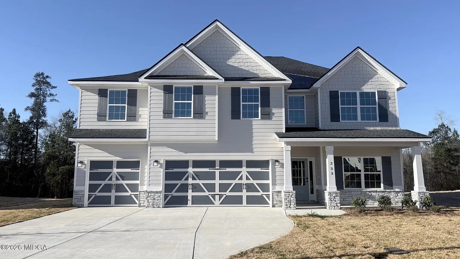 A charming Hughston Homes community nestled in the heart of Bonaire, Georgia, Magnolia Flats has everything you need to make it truly feel like home! The Belmont A plan is a Favorite with 3158 SF of Living Space. Entry Foyer, Formal Dining, Spacious Great Room, Luxury Kitchen & Breakfast Area, Media Room, 5 Bedrooms, 3 Baths, THREE Car Garage & Signature Gameday Patio perfect for Outdoor Entertaining! Many Included Home Automation Options and Tons of Included Luxury Features! Two Story Entry Foyer, Formal Dining w/ Coffered Ceilings & Wainscotting. Spacious Great Room w/ Wood burning Fireplace. The Gourmet Kitchen includes Ample Quality Cabinetry, Quartz Countertops, Herringbone Tiled Backsplash, Built-in Stainless Appliances, Gallery Gas Cooktop, Single Wall Oven, Built-in Microwave, Stainless Vent Hood, & Luxury Dishwasher! Large Kitchen Island, Breakfast Area & Walk-in Pantry for additional Storage. Owner's Entry w/ our Signature Drop Zone. 5th Bedroom & Full Bath conveniently located on Main Level. Upstairs leads to an Expansive Media Room, perfect for 2nd Living Area. Huge Owner's Suite w/ Sitting Area, Owner's Bath w/ Tile Shower, Garden Tub, Vanity w/ Quartz Countertops & Gigantic Walk-in Closet. Additional Bedrooms are Spacious & Bright. THREE Car Garage & Signature Gameday Patio perfect for Outdoor Entertaining! Tons of Included Features, such as Spray Foam Insulation, Gas Tankless Water Heater, 2' Blinds on Front of the Home, Gourmet Kitchen, our Signature Gameday Patio & Quality Craftsman Style will set us apart.
