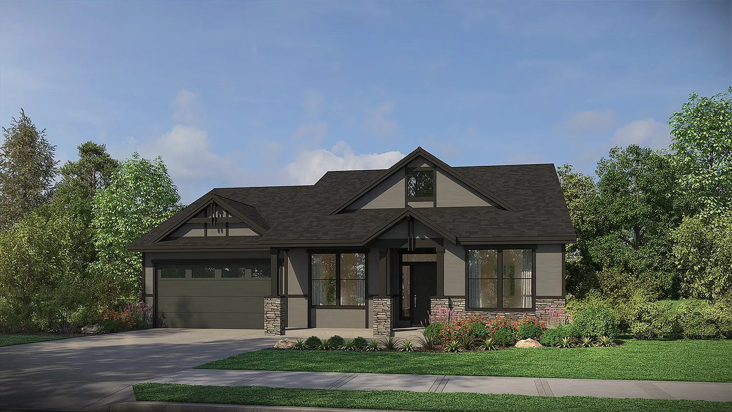 The Tamarack home plan is a beautifully designed 2,040-square-foot single-level home that offers a perfect balance of comfort, style, and functionality. Featuring 3 bedrooms and 2 bathrooms, this thoughtfully planned layout is ideal for families, professionals, or those looking to downsize without sacrificing quality or space. At the heart of the home is the spacious great room, a light-filled gathering space designed for relaxation and connection. The kitchen, which seamlessly flows into the great room and adjacent dining area, includes a large center island, a walk-in pantry, and ample counter space, making it perfect for entertaining or everyday meal prep. An optional dining nook bump-out adds flexibility to expand the dining area, while the adjoining outdoor living space invites you to enjoy al fresco dining or quiet evenings outside. The primary suite is privately tucked away on one side of the home, creating a serene retreat. It features a large bedroom, a spa-inspired ensuite bathroom with an optional all-tile shower, and a spacious walk-in closet. Two additional bedrooms are located on the opposite side of the home, along with a full bathroom, providing comfort and privacy for family members or guests. A dedicated laundry room and multiple storage options enhance the home's functionality, while the garage includes options for a third bay or an additional shop space, ensuring plenty of room for vehicles, tools, and hobbies. For those seeking added versatility, the...
