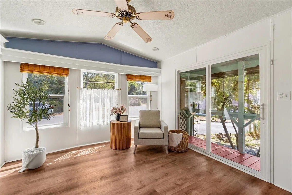 Charming 1-bedroom, 1-bathroom home located in Rowdy Creek Mobile Home Park, a peaceful 55+ community in Smith River. This 396 sq.ft. home is situated at the end of the road with stunning views of Rowdy Creek and access to a beautifully maintained outdoor area featuring picnic tables, benches, a garden, and a brick barbecue station. Interior highlights include an L-shaped kitchen with vintage charm, a brand new propane oven, a dining nook with floral accent wall, and a bright living room with sliding glass door access to the covered deck. The bedroom offers brand new carpet, built-in cabinetry, and custom storage nooks. Abundant natural light enhances the home’s cozy yet open feel. Space rent is $475/month and includes water, sewer, trash, and full access to a 9x11 detached shed—ideal for storage or hobbies. The park also provides an on-site laundry facility. Located just minutes from the Pacific Ocean, Jedediah Smith Redwoods State Park, and endless outdoor recreation. HOME IS BEING SOLD AS IS.