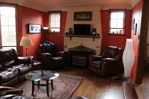 Our analysis highlights vintage chandelier, gas fireplace, and stylish leather furniture as key attractions of this home.