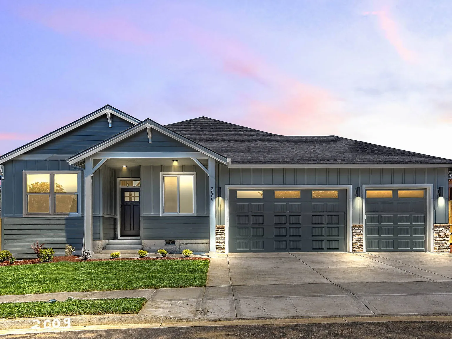 The Evergreen floor plan has 1,732 square feet of living space in an open design with 4 bedrooms, 2 bathrooms and an attached 3-car garage. This single story home includes a large laundry/utility room which connects the garage to the main house. A covered front entry invites you into the home. The 4 bedrooms are in a split layout, with 3 off of the entrance and a bathroom close by. There is an extra closet in the entry hall. The primary bedroom is situated toward the back of the plan, adjacent to the great room. This bedroom is spacious and includes vaulted ceilings, a large walk-in closet, a luxurious bathroom with double sinks, tile shower and private toilet. The floor plan has an open-concept kitchen and dining room that is set beside a large great room with vaulted ceilings. The great room's focal point is its functional and gorgeous (electric) fireplace, not to mention the beautiful windows that allow for plenty of natural light. The kitchen includes stainless steel appliances. The dining room has a sliding glass door that leads out onto a covered back patio and lush backyard. The home includes laminate flooring through, with tile in the bathrooms and utility room. The bedrooms have a plush carpeting. All countertops are a beautiful and sturdy quartz slab. The kitchen includes a large slab island which is a great feature when you want to be active in the kitchen while also interacting with others.