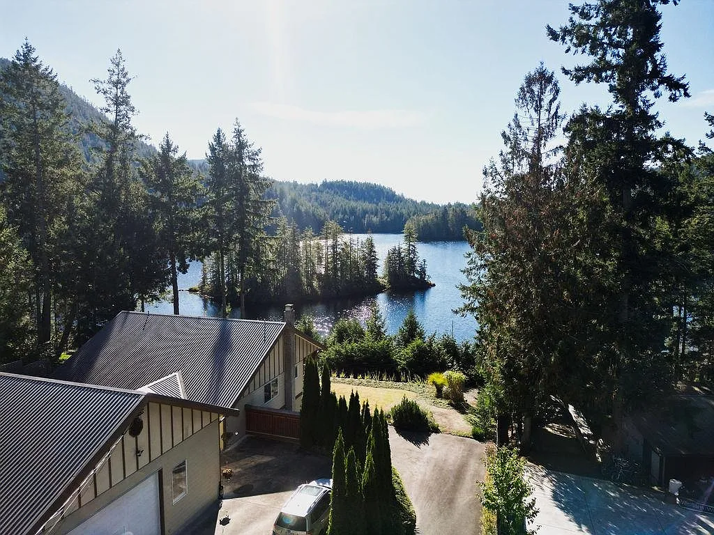Can you believe, this beautiful lakefront property has recently become available? Situated on a 1/3 acre lot, offering gorgeous panoramic views of the sparkling Garden Bay Lake. The main house spans 2,800 sq ft and features an open floor plan, with views from the spacious kitchen, living room and dining area and bonus office. The large bedroom on the main is complete with a beautiful ensuite. Down below, on the lower level is space for guests with two additional bedrooms a large open rec room, perfect for spreading out. Beyond the main home, the property includes a separate two-bedroom suite, ideal for extended family or rental income, a large double garage, fire pit and patios and decks on every level Bring your family and enjoy this piece of paradise, Summer, weekends or year round.