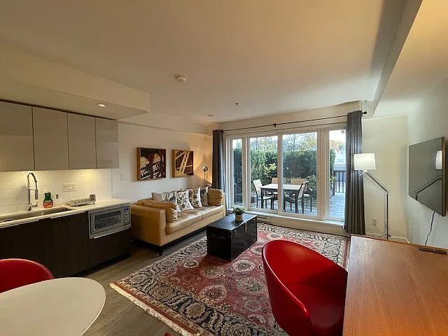 This is a junior 1 bedroom/1 bathroom studio apartment located in the Brewery District of Grandview-Woodland. Location: Boheme is conveniently located in the heart of a budding neighbourhood steps from transit, trendy breweries and restaurants. Open concept living featuring premium integrated appliances and glas cooktop. There is in unit washer/dryer as well as a large private patio, Apartment is fully furnished including kitchenware, towels, bedding and patio furniture. The building offers a elevator, fitness room and lounge facilities. Lease terms: Rent includes gas and heating, internet, secure underground parking and storage. Lease term is minimum 3 months, monthly rent of $2,250. Damage/security deposit of half of one months rent. Tenants are required to obtain sufficient insurance to cover personal belongings against loss or damage. References and credit checks are required. First month's rent and security deposit due at signing of contract. Rent term is for minimum 4 months. References and credit checks required. No smoking and no gas or charcoal barbeques. No pets. Apartment should be left tidy and clean. If any maintenance concerns please let landlord know immediately.