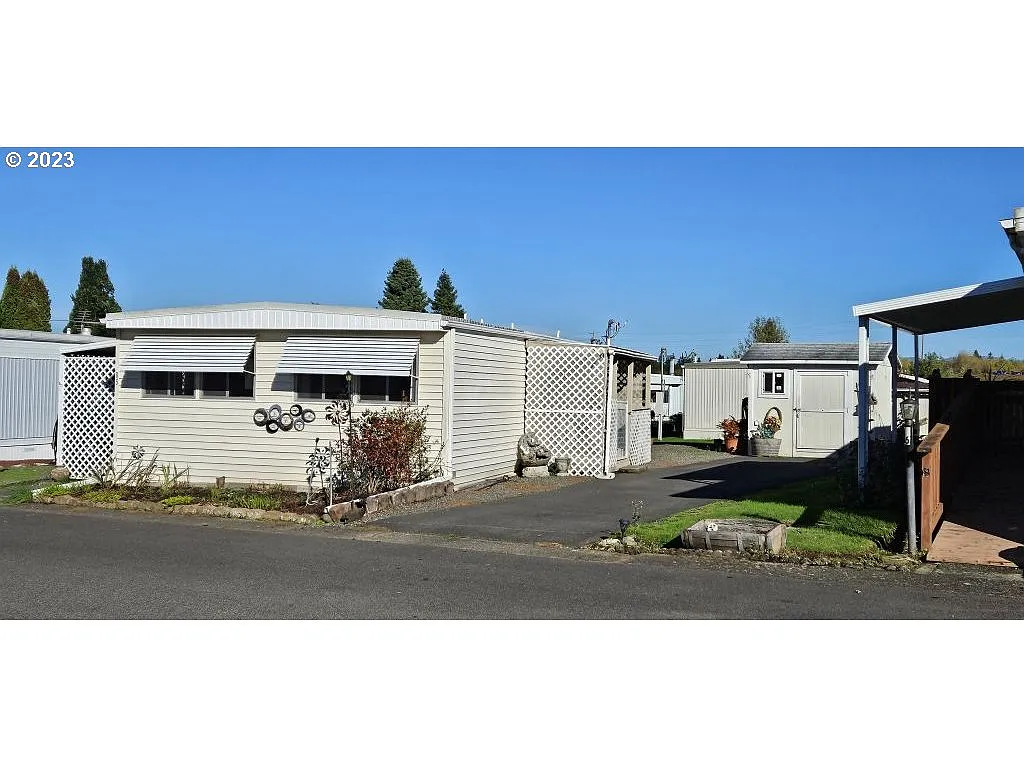 Affordable living in this cozy and clean, move-in ready double-wide home in peaceful, well-maintained 55+ park. Home is 800 sqft with 2 bedrooms and 1 bath. All appliances stay, including washer/dryer. Comes with 2 window A/C units. Large, covered patio and covered porch. Good sized lot with storage shed and low maintenance yard. Newer Hot Water Heater. Conveniently located to nearby stores, close to I-5 for easy access to downtown. Park is in the process of installing new recreation facilities, such as Bocce Ball and horseshoe areas. Gazebo and picnic tables coming soon. Sale subject to park approval. Buyer will need to qualify with the park prior to submitting an offer.