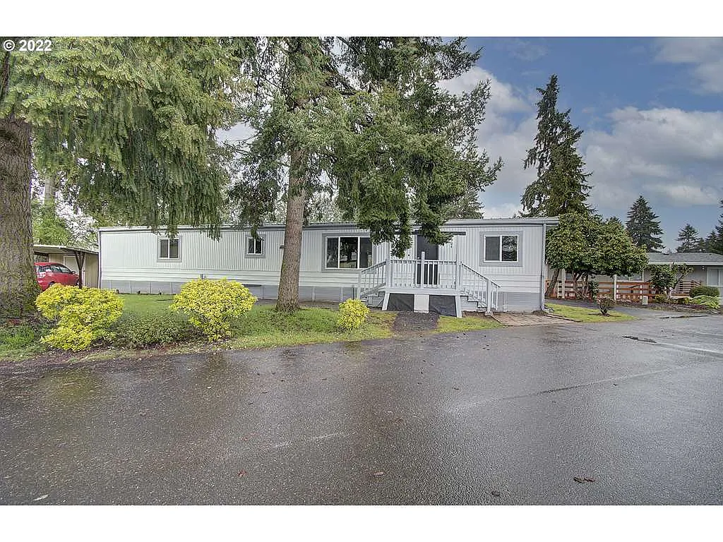 Super adorable 1979 Single Wide Mobile! 924 SFT, 2 Bedroom, 2 Bathrooms. Super clean and ready for move in! Love that both Bedroom Suites on opposite end. New Doors, New Flooring, New Carpet throughout. New Exterior and Interior Paint. All New Fixtures and LED Lights. Kitchen appliances and washer and dryer included. Metal Roof installed in 2004. Covered deck out patio. Detached Shed & Carport. Very Family Friendly park. Lot fee: $720.00 month. Includes Water/Sewer.