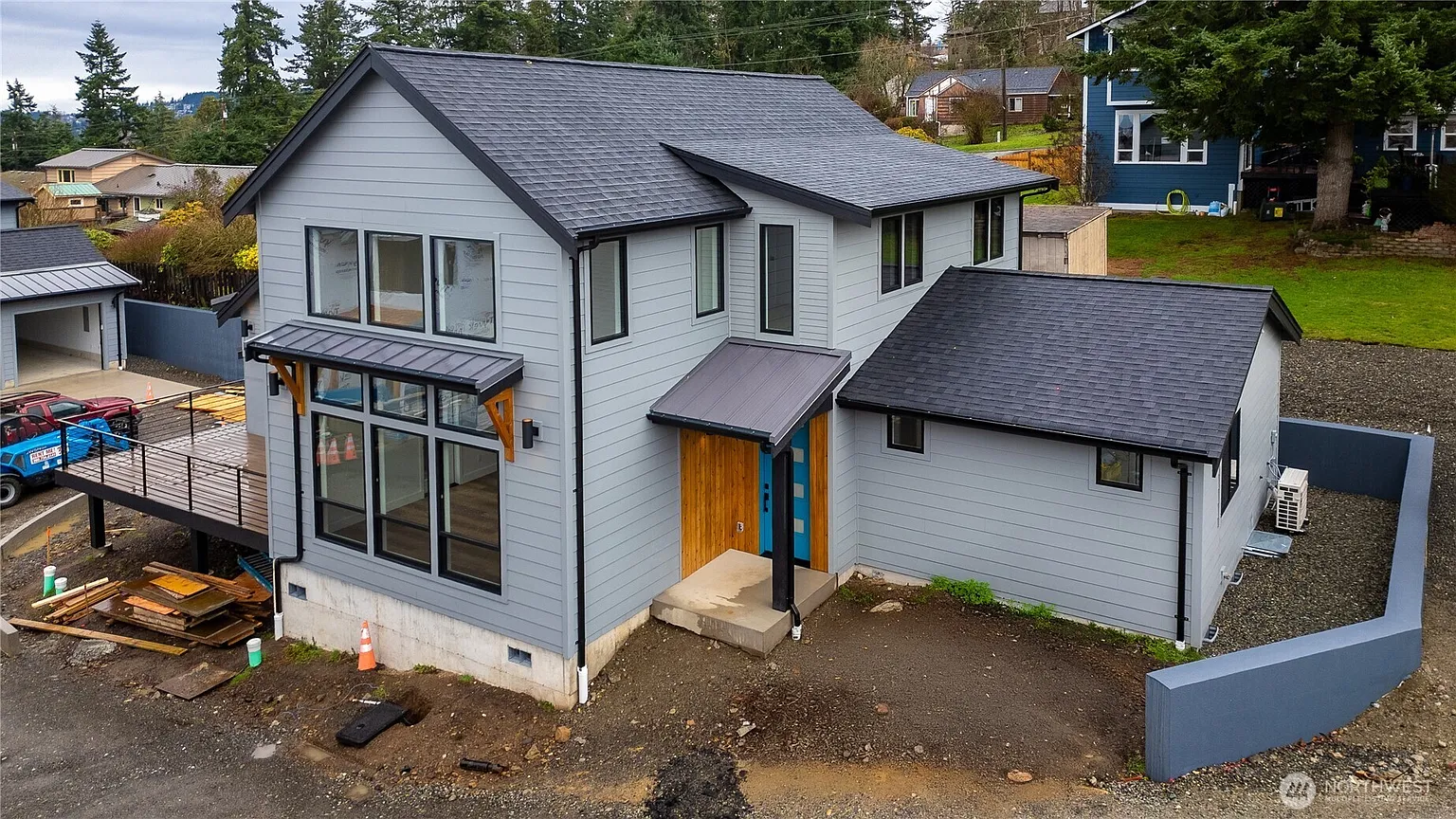 Brand new luxury living awaits you in this brand new infill home with custom touches throughout. This 3 bed 2.5 bath home features wide plank flooring continuing up the stairs and throughout the hallways, custom cabinets, a flowing upscale kitchen with and upgraded Bosch appliance package, great light and a very spacious main living area with southern exposure. The main floor primary suite features heated bathroom floors, automatic floor lighting, a very custom full tile shower and full A/C for year round comfort. Located on Puget hill, this home was built to a high standard including WesTek windows, a super high garage with sprinter van height doors, all just minutes from Whole Foods and Galbraith mountain's extensive trail system.