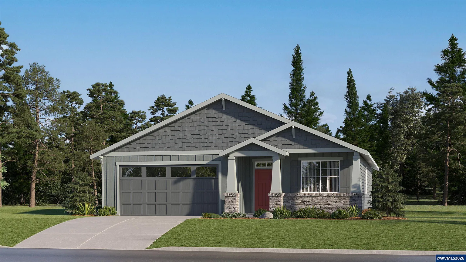 This new construction home is located in Henshaw Farm, with convenient access to Simpson Park, Linn-Benton Community College, downtown historic Albany, and the Golf Club of Oregon, all within a short drive. The Trenton plan is a single-story design with a split layout that places the open kitchen, dining room, and great room together, extending to a back patio for outdoor living.