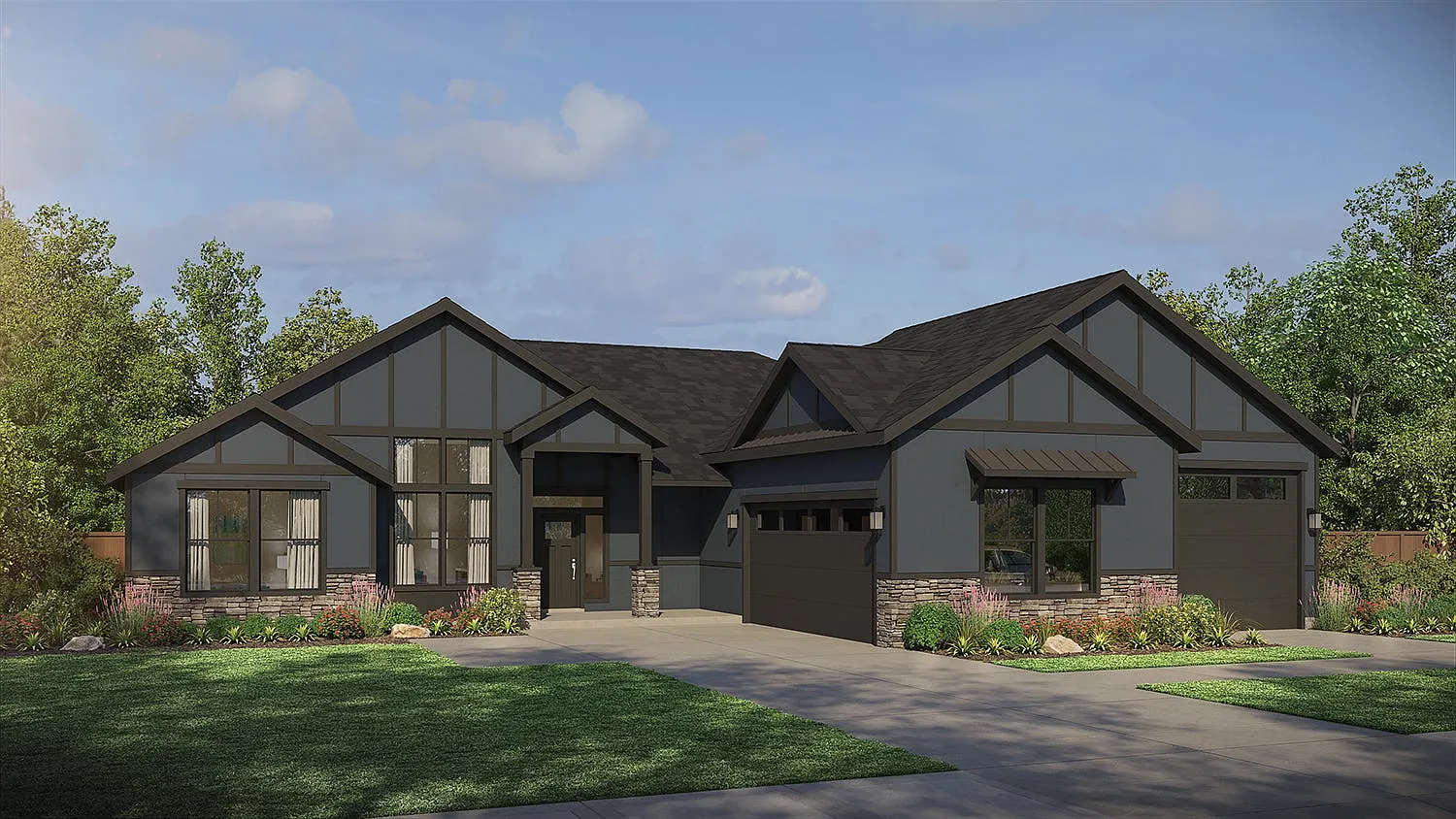 The Tahoma home plan is a thoughtfully designed 3,001-square-foot residence offering 3 to 4 bedrooms, 2.5 to 3.5 bathrooms, and a flexible layout that blends open-concept living with private retreats. With a primary suite on the main floor, a den, and multiple bonus room options, the Tahoma is ideal for homeowners seeking both everyday comfort and adaptable space. A striking optional double-door front entry welcomes you into a spacious foyer, where a coat closet sits on one side and access to the den-perfect for a home office, study, or hobby room-rests on the other. The entry leads past a convenient powder room and opens into the heart of the home: an expansive great room with soaring 12-foot ceilings. A dramatic 12-foot sliding glass door connects the great room to the included covered patio, creating a seamless indoor-outdoor living experience. The great room flows effortlessly into the kitchen and dining area, with the dining space offering its own sliding glass door to the patio for added accessibility and natural light. Just beyond the dining area is the luxurious primary suite, thoughtfully positioned for privacy. The spa-inspired primary bath includes a spacious glass shower, soaking tub, dual vanity, private water closet, and a large walk-in closet. For ultimate convenience, the walk-in closet connects directly to the laundry room, which is also accessible from the kitchen and leads into the oversized 3-car garage. On the opposite side of the great room, two guest...