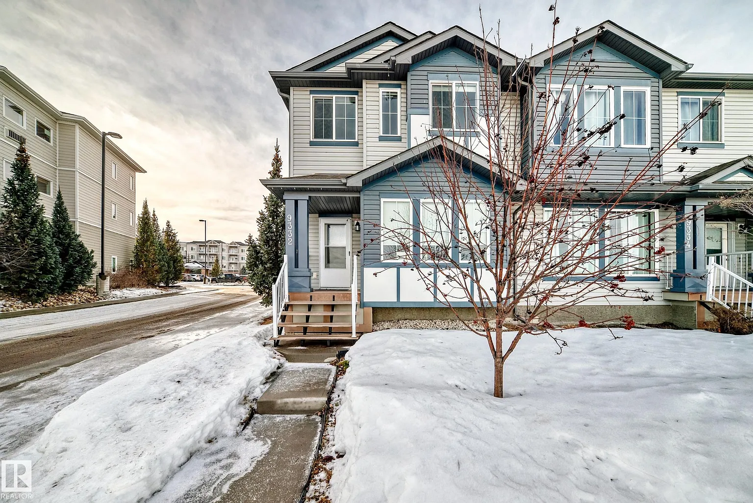 Beautifully maintained corner end-unit townhouse in the sought-after community of Webber Greens. This 2-storey home offers 3 bedrooms, 2.1 baths and 1,390 sq ft RMS above-grade living space (professionally measured; floor plans available). The main floor features a welcoming entry, spacious living and dining areas, and a modern kitchen with stainless steel appliances, stylish cabinetry, tile backsplash, ample counter space, and a large island—ideal for everyday living and entertaining, along with a convenient 2-pc bath. Upstairs you’ll find a generous primary bedroom with walk-in closet and 4-pc ensuite, plus two additional bedrooms and a full 4-pc bathroom. The full unfinished basement offers excellent future development potential. Enjoy outdoor living on the deck and the convenience of a double detached garage. Water softener is included. Exceptional west-end location with quick access to Whitemud Drive and Anthony Henday, close to major shopping and services including FreshCo, Shoppers Drug Mart,Tims