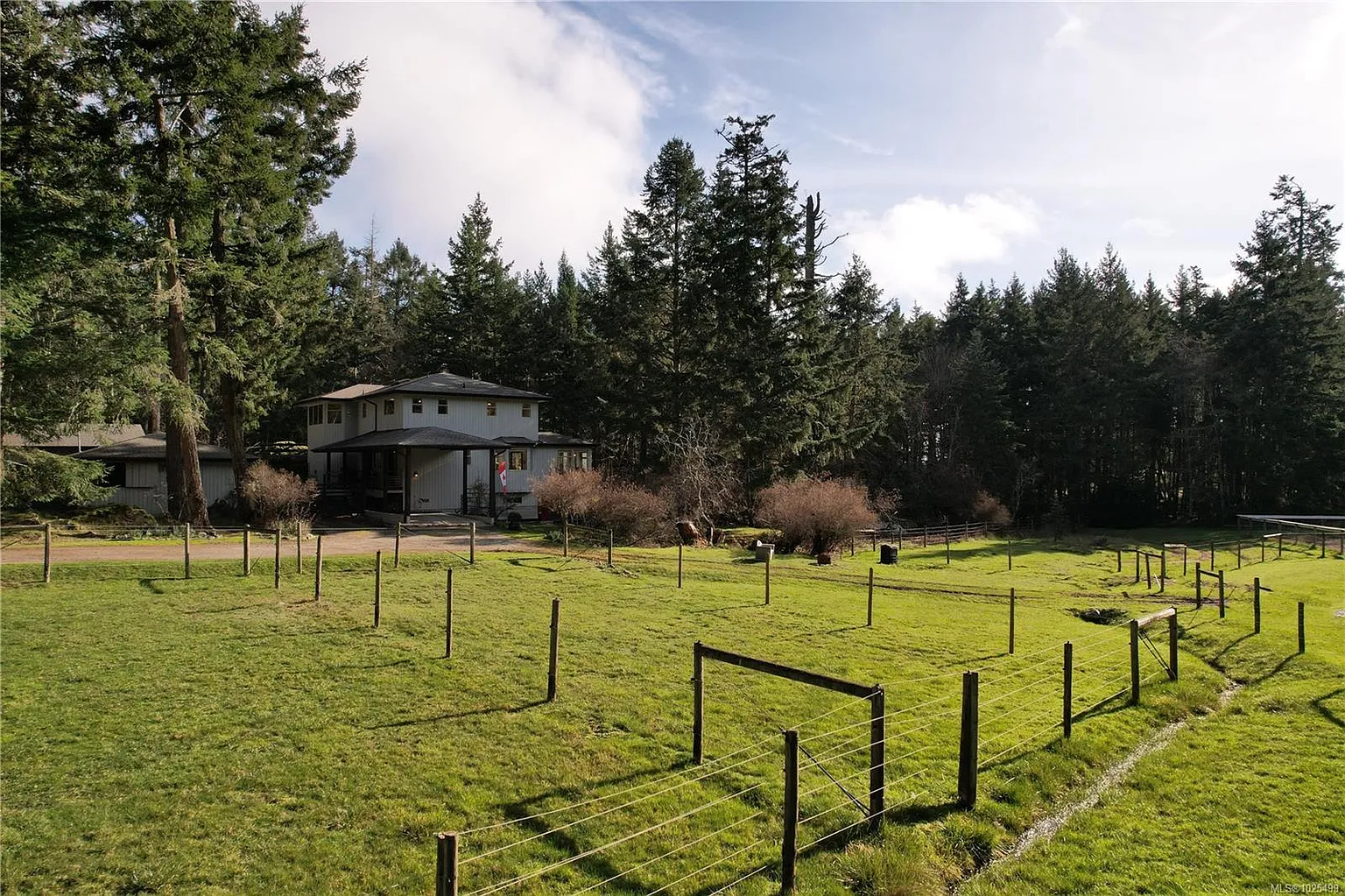 This property offers a classic Salt Spring Island setting. It is nestled on five private, sunny, level acres with extensive green space and a pond, surrounded by Mature trees. The well built home features a welcoming country kitchen with a Pacific Energy woodstove. The kitchen opens to the eating area and family room. The upper level offers a bright living and dining combination with a fireplace, two generous bedrooms one with an ensuite and a third room that could be used as a bedroom, den or home office. The land is fenced for horses and equestrian amenities include a large riding ring, a six stall 1430 sqft barn which could be converted to a workshop, a two stall shed, paddocks and pastures. The septic field is new, and there is an RV site. Zoning allows for a guest cottage and studio adding future potential. Ideally located on the south end of the island in a desirable area, this property offers privacy, versatility and a true rural island lifestyle.”
