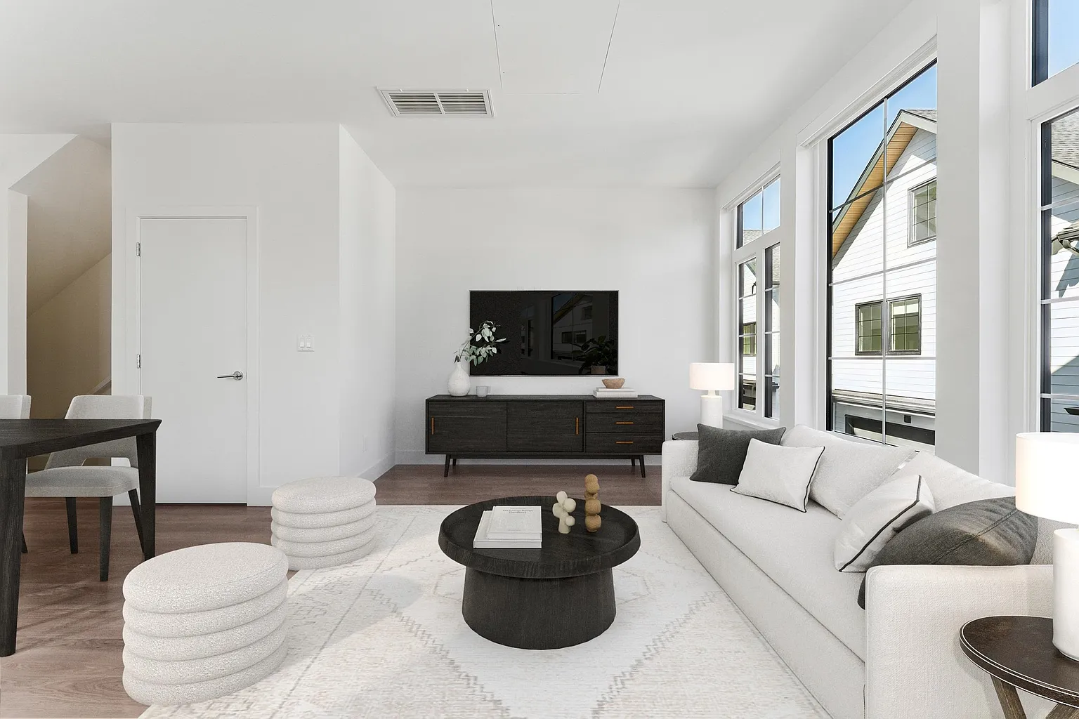 Located in Richmond's desirable Steveston neighbourhood, Cavendish by Panatch Group offers this move-in-ready 3 bedroom + den, townhome with over 1, 200sqft of well-designed living space across two floors. The B floor plan features an open-concept main level with a modern kitchen showcasing quartz countertops, shaker-style cabinetry, and integrated Fisher & Paykel appliances and a versatile den. Enjoy exceptional outdoor living with a large fenced yard and a private deck off the primary bedroom. Upstairs, all three bedrooms are grouped to keep everyone connected. Finished with a double-wide 2-car garage and thoughtful layout throughout, this home offers comfort and functionality in one of Richmond's most sought-after communities. Sales Gallery: Unit #33