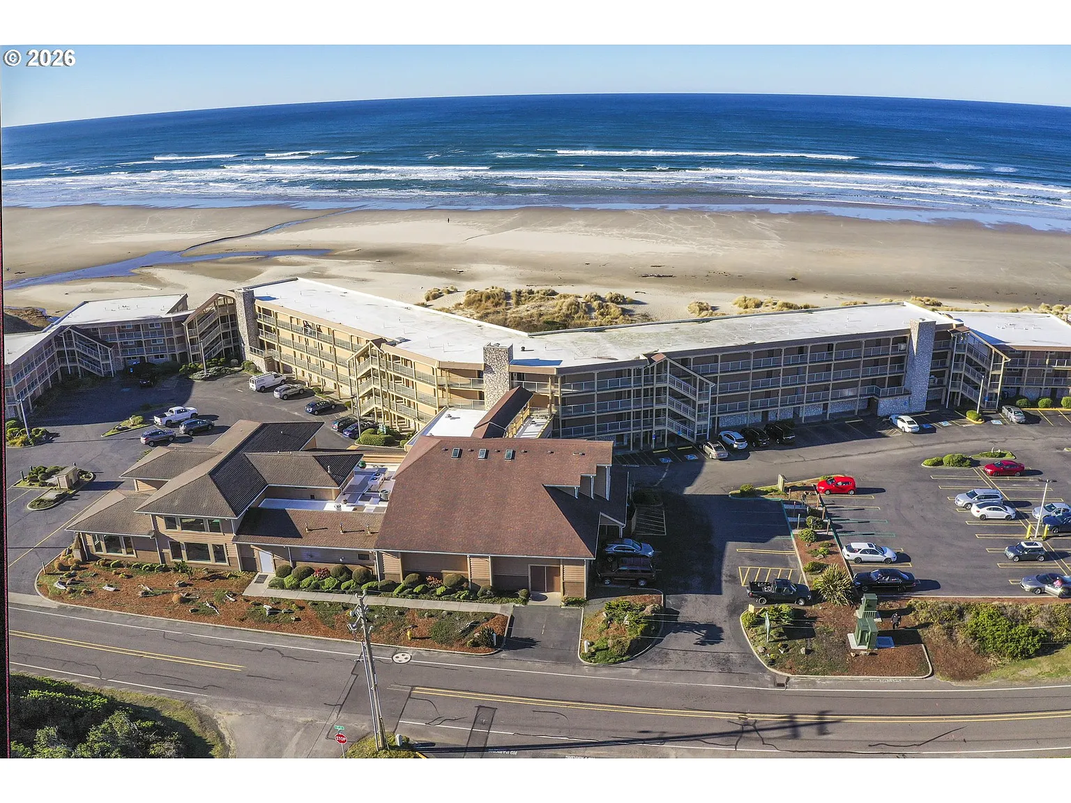 Only Ocean front Condo development in the Florence area! This is a ground floor unit featuring two rooms with a privacy door in-between. One side has a full Kitchen, Full bath and two queen beds. The other side has an additional queen bed, kitchenette and full bath. Both units have direct access to out to the beach! Amenities include an onsite restaurant, Lounge, Indoor pool and hot tub and also banquet facilities. Make this your go to vacation place! This unit is in the rental pool, however, an owner could remove it from the rental pool and occupy the unit.