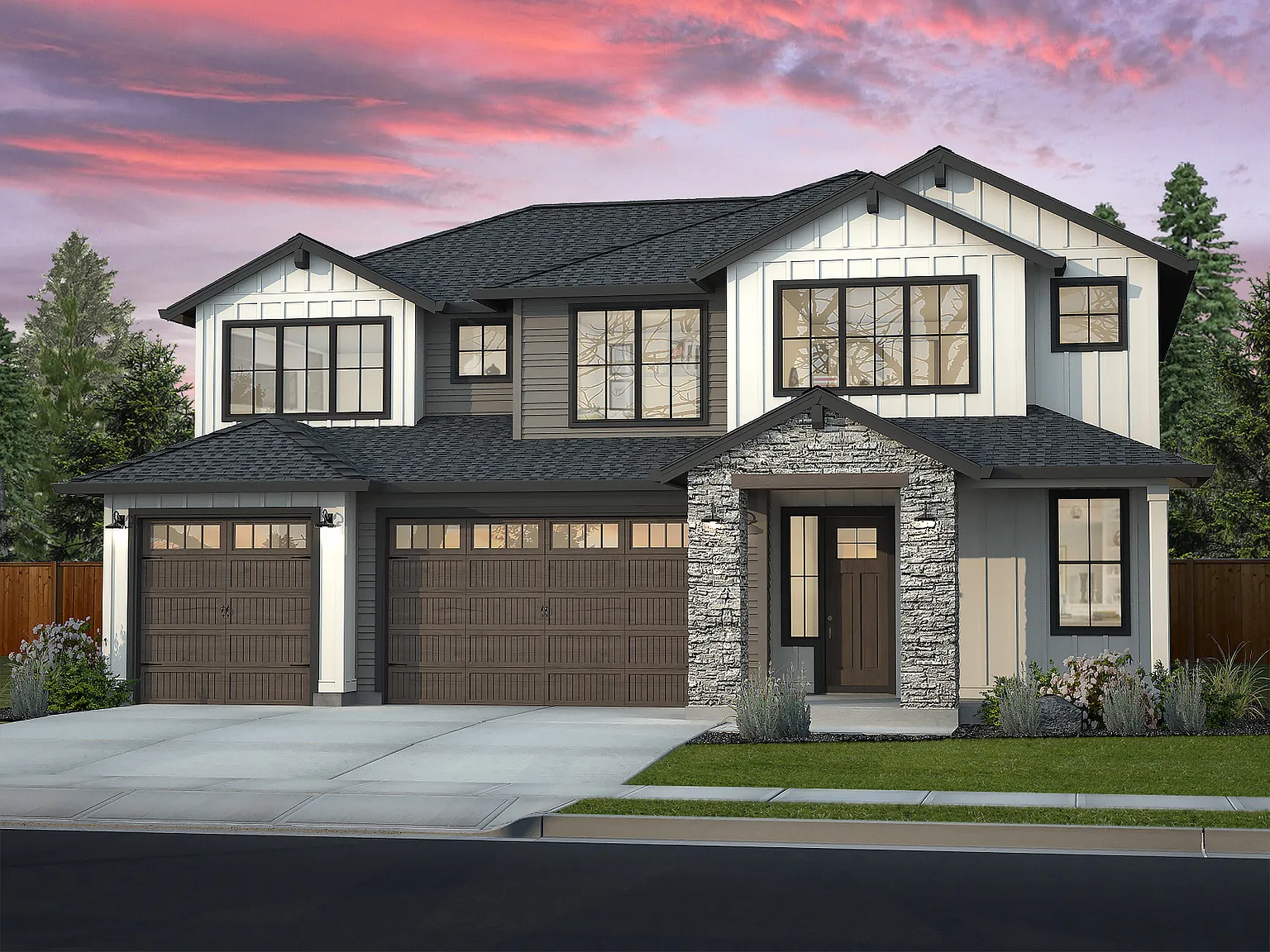 A standout plan built for entertaining, the Laurelhurst offers two levels of thoughtfully designed living space-plus an included 3-car garage. Step into a welcoming entry with a double-door den or home office, then move into the open-concept dining area and great room. One of the largest kitchens in the New Tradition lineup anchors the heart of the home, complete with a generous center island, eating bar, and a slider to a covered patio-outdoor fireplace optional. Want more room to gather and dine? Choose the expanded Great Room/Dining layout for even more space to live and entertain. On the main level, a flexible guest suite includes a full bath, closet, and optional slider to the patio-ideal for multigenerational living or weekend guests. Upstairs, you'll find two standard bedrooms, a full bath with double vanity, a large flex room, and a conveniently located laundry room. The luxurious owner's suite includes a spacious walk-in closet and spa-inspired bath, with options for an indulgence shower or oversized walk-in shower.