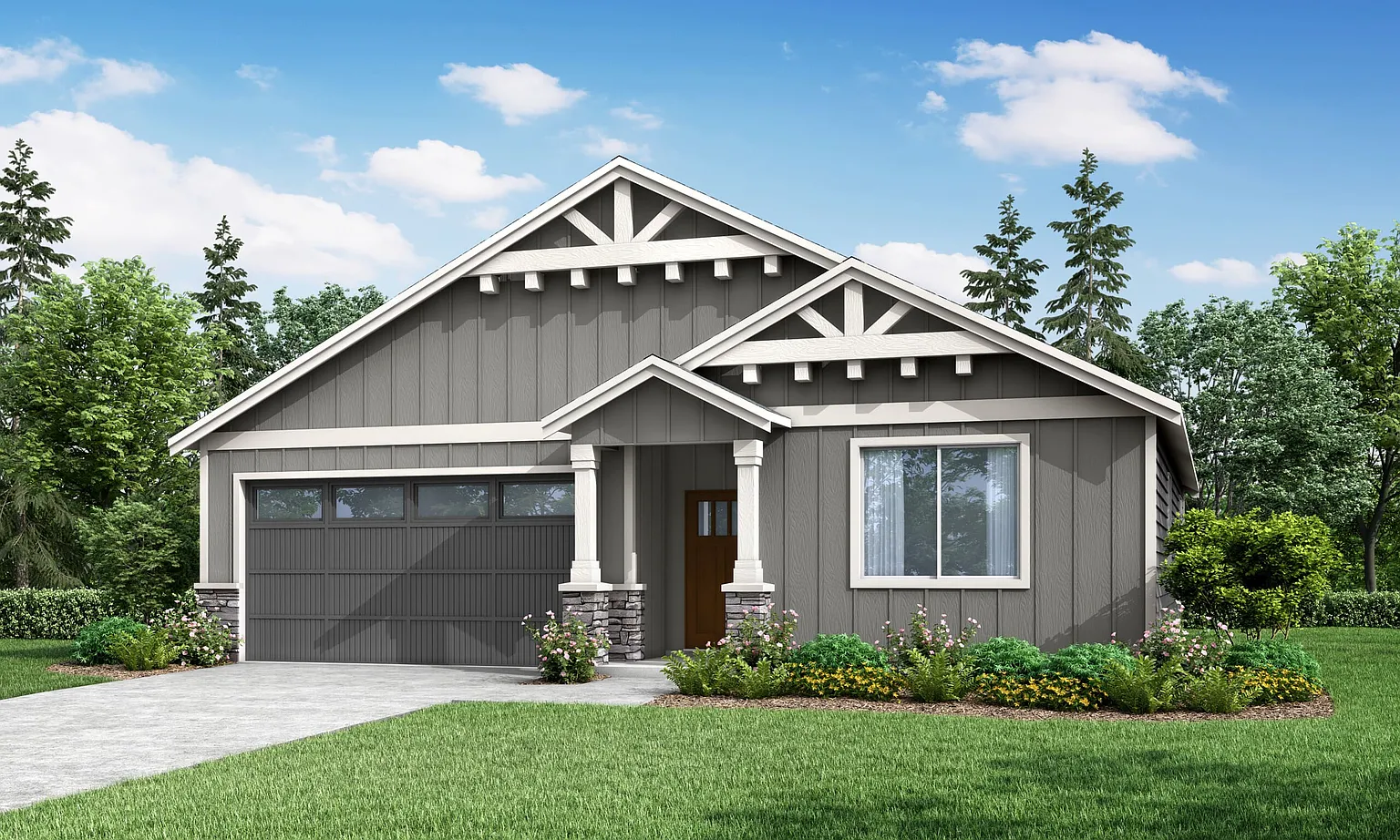 Step into comfort and style with our 1,594 square feet, one-level home! This cozy layout features an inviting open great room, a dining nook, and a well-designed kitchen space - perfect for hosting gatherings with friends and family. Our thoughtful design ensures a harmonious living experience by placing the guest rooms away from the primary bedroom offering privacy and functionality. The heart of this home is the welcoming vaulted great room, creating a space to entertain or unwind on cozy nights. Abundant natural light pours in through the surrounding windows, enhancing the warmth and openness of the living area. At Holt Homes, we are dedicated to delivering quality materials and craftsmanship, tailored to meet the diverse demands of every lifestyle with ease. Welcome to a home built for the Pacific Northwest - where comfort meets thoughtful design.
