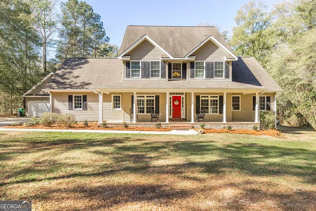 SELLER OFFERING $20,000 IN CONCESSIONS! I sit peacefully on 10 beautiful acres with my own winding creek, offering privacy, space, and room to breathe. With 3,385 square feet of thoughtfully designed living space, I was built to be both welcoming and impressive. Inside, I offer 4 spacious bedrooms and 3.5 baths, including a serene owner's suite on my main level, creating a private and relaxing retreat. My dedicated office is perfect for productive mornings, and I proudly feature two generous bonus/flex rooms - one upstairs and one downstairs - ready to become a media room, playroom, home gym, guest haven, or perfect for the homeschooling family. Rich, warm wood floors flow through my main living areas, adding timeless character, while soft carpeting creates comfort in all the right places. With two HVAC systems, I keep everyone comfortable year-round. Step outside and you'll find one of my favorite features - a covered porch stretching the full length of my exterior, ideal for slow mornings, evening gatherings, and taking in the peaceful views of the surrounding acreage and creek. My backyard is designed for unforgettable memories, showcasing a heated gunite pool complete with a stunning waterfall and walk-out entry, all securely fenced for safety and enjoyment. Wired workshop providing space for all the outdoor toys and extras. Tucked among the trees, I even have a charming treehouse, adding a little magic and adventure.