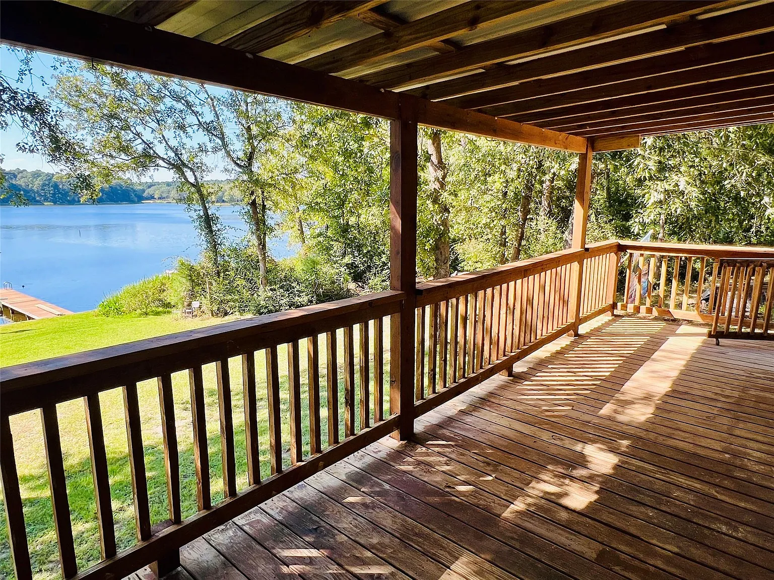 GORGEOUS WATERFRONT HOME on HOUSTON COUNTY LAKE! Nestled in the pines of East Texas, welcome to Sunset House, your lakefront retreat! Well-maintained property offers the ideal combination of comfort, updates, and outdoor enjoyment, situated on a .54AC waterfront lot with pier and bulkhead in place. Its front porch overlooks the lake & provides an elevated treehouse view, for enjoying morning coffee or evening sunsets over the water. Numerous updates, ensuring peace of mind & move-in readiness. NEW: Tankless water heater, luxury vinyl plank flooring, kitchen cabinets, butcher block countertops, AC condenser, roof, carport, Concrete driveway with additional concrete pad for parking, New pier boards, Ample covered storage for outdoor lake toys. The property’s waterfront setting, combined with improvements, makes it a perfect primary residence, weekend getaway, or investment property. Peaceful surroundings & direct access to the lake, ready for you to enjoy all that lake life has to offer!