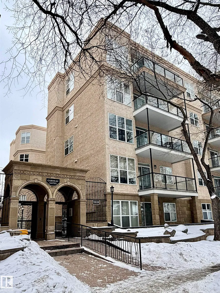 Welcome to Garneau Gates. Very desired area and Condo Building. Located close to the University and many other amenities including busing and recreational activities. This 2 Bedroom 2 Bath Ground Floor unit has Air Conditioning, high ceilings lots of space and outdoor patio for enjoying those great summer days. Complete with 2 Titled Parking Stalls, generous sized kitchen and island this is a great place to entertain and enjoy the heart of the Garneau Area with the river valley and so much to offer so close.