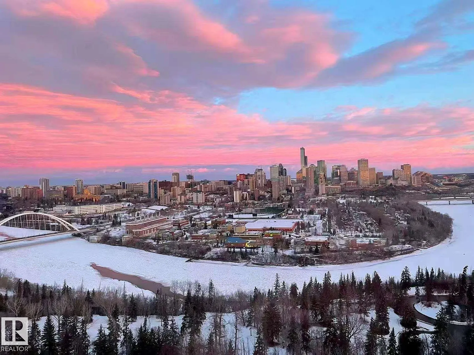 Enjoy breathtaking views in this stunning 18th-floor unit located in the quiet concrete building Waters Edge on scenic Saskatchewan Drive.This spacious 2 bedroom, 2 bathroom home offers an exceptional layout and comfortable urban living with panoramic views of Downtown and the beautiful River Valley.The modern updated kitchen features stainless steel appliances,stylish tile backsplash,and a convenient walk-in pantry.Floor-to-ceiling windows fill the living area with natural light while showcasing the incredible scenery.The primary bedroom offers a walk-thru closet with plenty of storage and 4-piece ensuite.The 2nd bedroom includes a generous closet and another 4-piece bathroom.Residents can enjoy great building amenities such as a fitness room,games room, and sports court.Ideally located steps from ravine trails,parks,bike paths,and just minutes from the vibrant shops,restaurants,festivals of Whyte Avenue,and U OF A.A fantastic opportunity for anyone looking for value and lifestyle in a prime location.