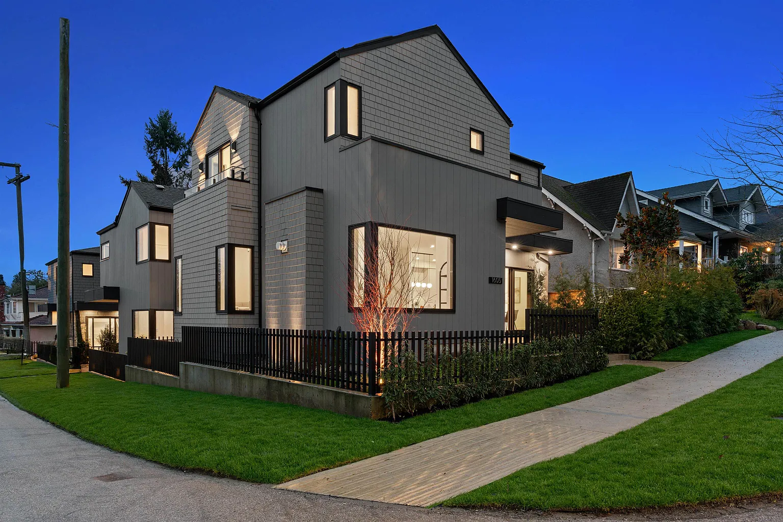 Striking Scandinavian-inspired architecture meets modern West Coast living at 1605 E 21st Avenue—an exceptional offering in Cedar Cottage. This fully detached, stratified home features 4 bedrooms, 3 bathrooms, and a private patio and garden for seamless indoor-outdoor living. The oversized open-concept main level connects the kitchen and dining area to multi slide patio, a rare main-floor bedroom adds flexibility for a guest room or office space. Upstairs offers 3 bedrooms, including a spacious primary with a walk-in closet and ensuite. Interior highlights include oak hardwood floors with radiant floor heat, custom millwork, integrated Bosch appliances, quartz waterfall countertops, and a sleek linear gas natural marble fireplace. Open House: Saturday, April 4, from 2 - 4 PM.