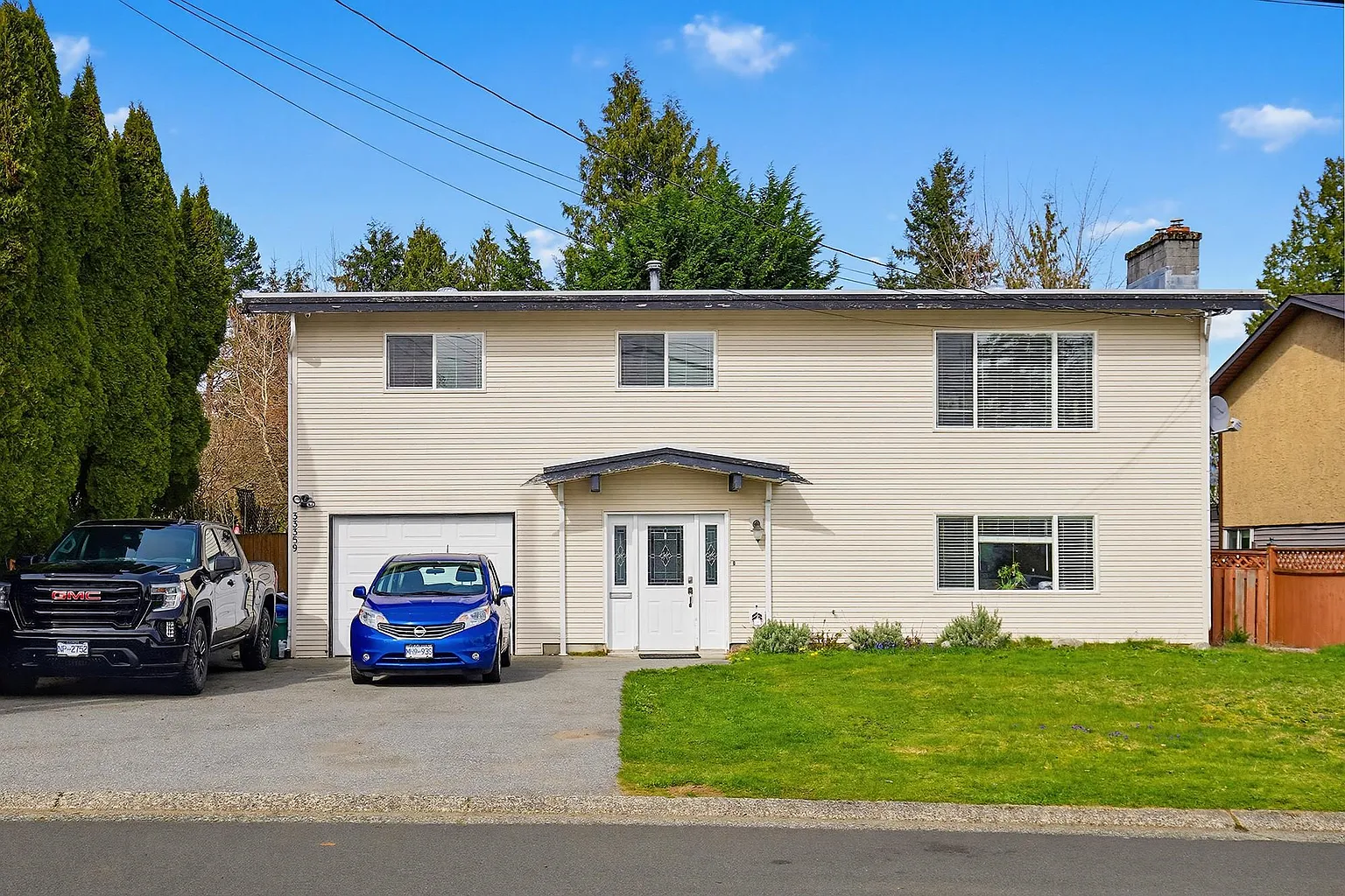 GREAT NEIGHBOURHOOD! Shows beautifully. Living Room has Mt. Baker view. Custom maple kitchen. Huge entertainment sized sundeck with wood framed plexy glass rail. Basement has large family room with wet bar & steps out to a treated wood patio. Lovely laundry room. HUGE 60X160 FLAT FULL FENCED & PRIVATE LOT is tastefully landscaped. Walk to elementary school. Only 5 minutes from West Coast Express.