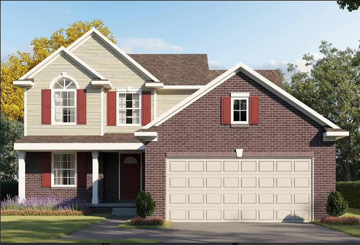 Open concept floor plan, 3-bedroom, 2.5 bathroom colonial-style home, Homes features include a fireplace, 2-story foyer, flex room, and an open kitchen and entertaining area. This home has high-end finishes including white kitchen cabinets and a matching island, granite countertops throughout, decorative wrought-iron staircase, and a luxurious master bathroom.