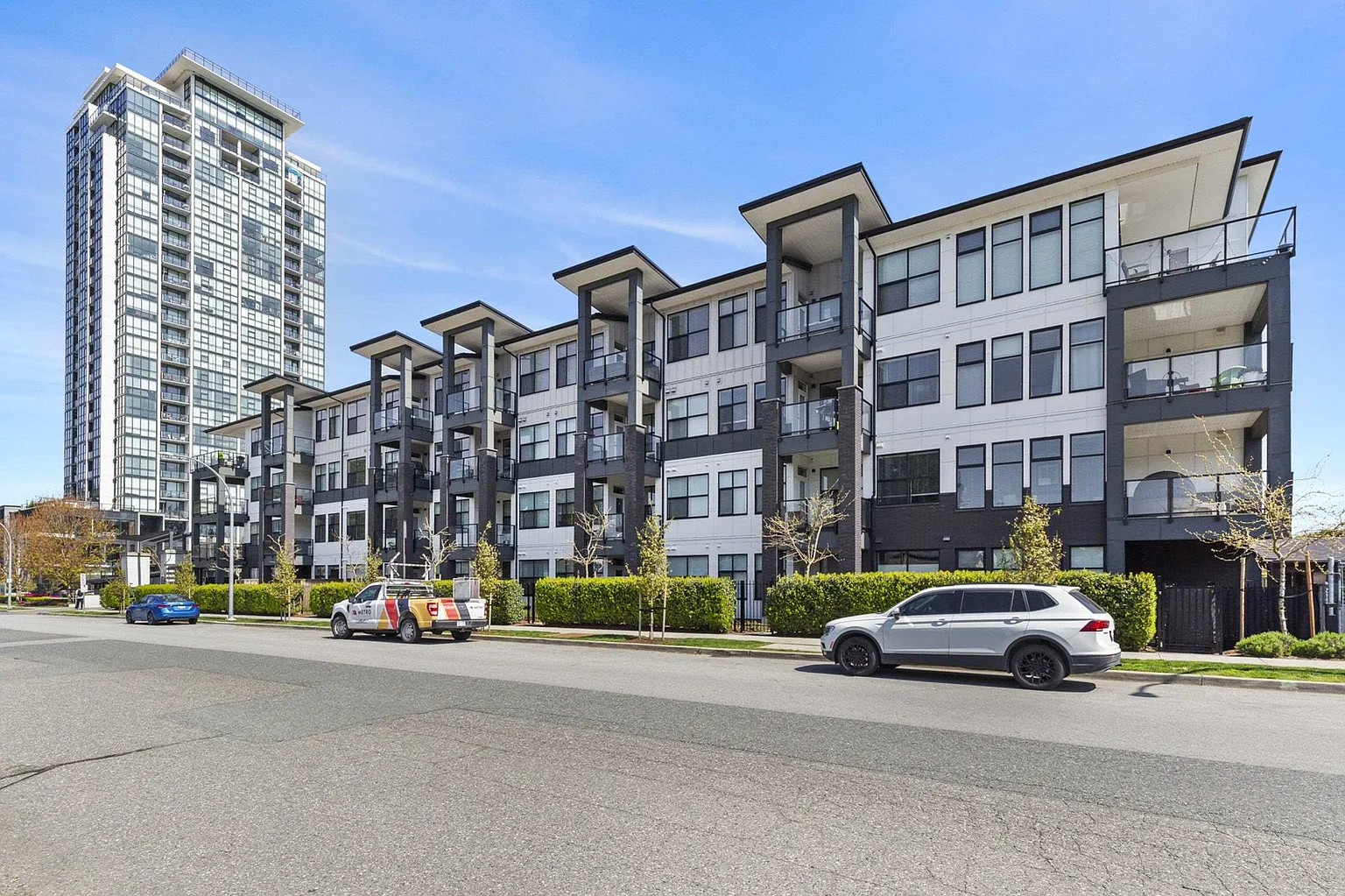 Welcome to Onyx at Mahogany, one of Abbotsford’s most sought-after condo communities with easy freeway access. Just steps to Seven Oaks Mall and Mill Lake. This gated complex offers a gym and secure underground parking with 2 stalls. Quietly located on the cool side of the building. This 1-bedroom home features a modern design with 10’ ceilings and an efficient open-concept layout. Enjoy A/C, heated floors, a luxurious 5-piece ensuite with rain shower, and a large covered sundeck. Bright, spacious, and move-in ready. Kids, pets, and rentals allowed. Live comfortably and entertain in style—call today to view this unit!