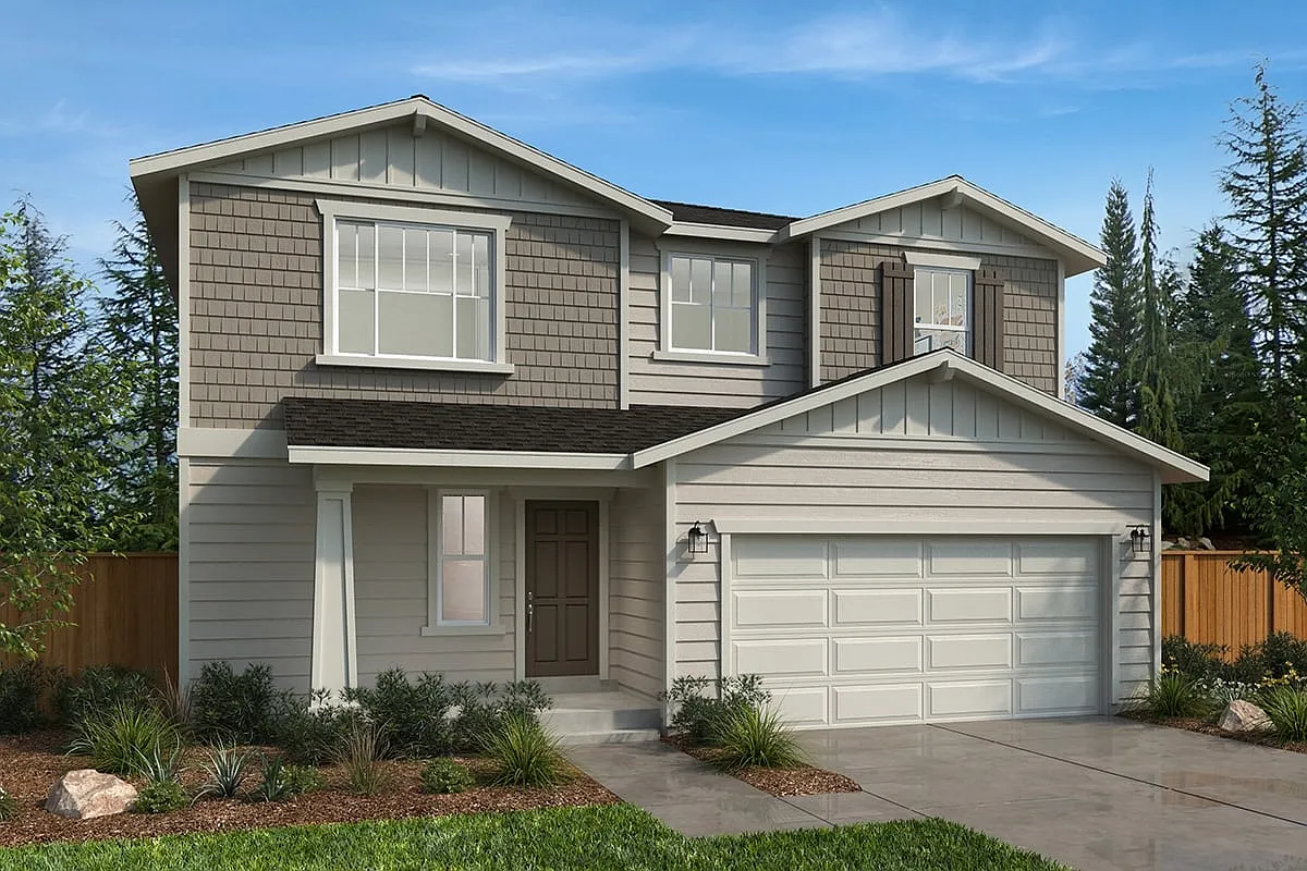 This beautiful, two-story home showcases an open floor plan with 9-ft. first-floor ceilings, luxury vinyl plank flooring and a spacious great room. The modern kitchen is equipped with 42-in. upper cabinets, an island, stainless steel appliances and quartz countertops. Upstairs, a flexible loft provides space for a play area or exercise room. Relax in the primary suite, which features a spa-like connecting bath that includes a dual-sink vanity, tub, separate shower, walk-in closet and enclosed water closet. See sales counselor for approximate timing required for move-in ready homes.