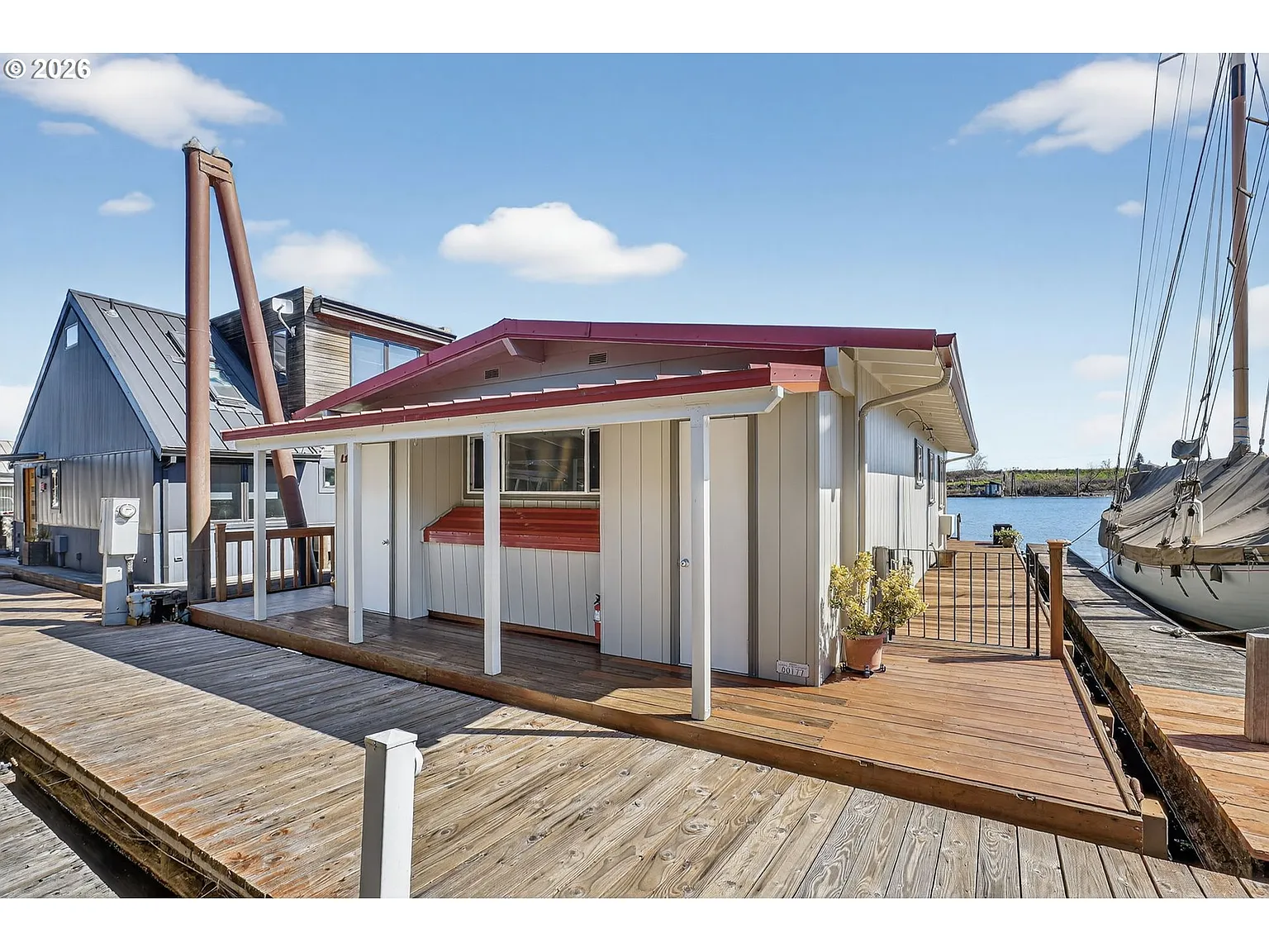 This is a very well maintained one bedroom, one bathroom floating house with a walk-in pantry, a washer, and dryer, a walk-in closet in the bedroom, and a sliding glass door that opens onto a deck with a view of the Multnomah Channel and Sauvie Island. Cozy up to the gas fireplace in the cooler months, and enjoy the scenery through the wall of windows. Salmon run up the Multnomah Channel in the Spring. It is not uncommon for people to catch crappie, bass, walleye, and sturgeon on the Channel, also. It’s a great place for boating and paddling. It’s not far from the trails in Forest Park, and it’s just down the mountain from a mountain bike park. Shopping and restaurants are only a 3 mile drive away, in Scappoose. This floating home is move-in ready. Just unpack and start enjoying life on the water. There are two storage closets and a workbench with a lift-up top on the dock side of the house, which is all covered by an overhang of the roof, making a great outdoor mini workshop. There’s even an automatic watering system, on a timer, for outside plants. The float is in good shape, but likely is not in good enough shape for financing as it is. Financing is available, however, that could add the price of float work to the price of the floating house.Schedule a showing!