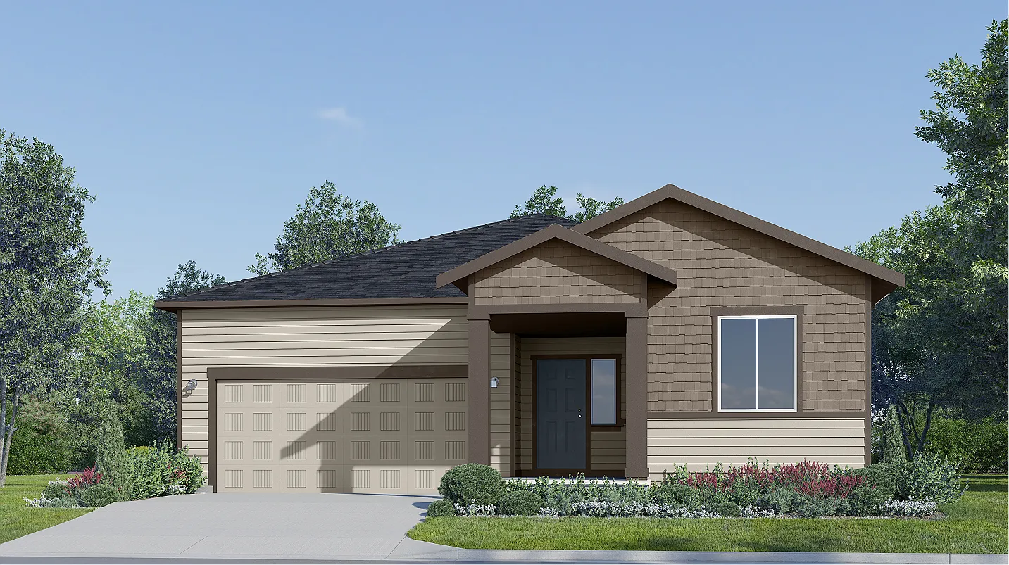 This new single-level home boasts a low-maintenance and modern design. The stylish kitchen shares an open-concept floorplan with the living and dining areas, and a spacious covered patio is ready for outdoor entertainment and leisure. Three bedrooms are tucked away to the side of the home for improved comfort and privacy, including the luxurious owner's suite with an en-suite bathroom and walk-in closet.