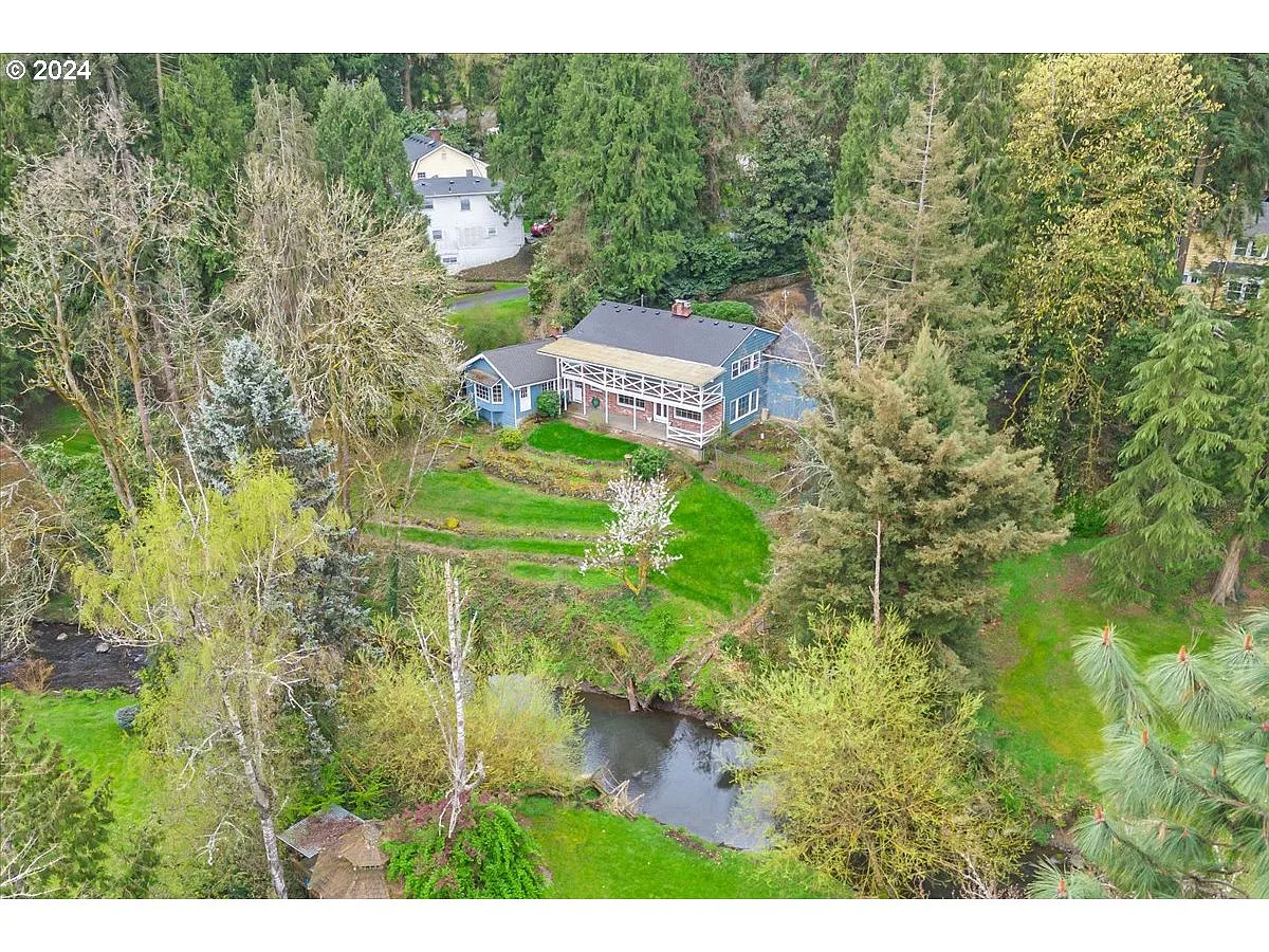 Nestled among cherry trees, rhododendrons, and towering evergreens, this charming Milwaukie home offers an idyllic and peaceful retreat. Set back from the road on 0.7 acres, and with a brand new roof, it promises unparalleled privacy and serenity, with a beautiful creek that plays host to an array of birds and wildlife. The heart of this home is its inviting living room, featuring a cozy gas fireplace, original oak floors, exposed beams, and a stunning view of the backyard and creek through multiple windows. It's the perfect spot for relaxing or entertaining, with nature's tranquility as your backdrop. Upstairs, three bedrooms, each leading out to a covered deck, offer peaceful views of the lush landscape, ensuring every morning begins with a serene start. Adding to the home's unique character is an attached historical log cabin-style second living room, hinting at tales from the past and offering a distinctive space with a multitude of possibilities. While the home cherishes its original charm, it also presents a wonderful opportunity for those eager to infuse it with their personal touch. Ideal for nature lovers and those valuing privacy, this property is a canvas ready for the next owner to create their masterpiece, all while enjoying the unparalleled beauty of its surroundings.
