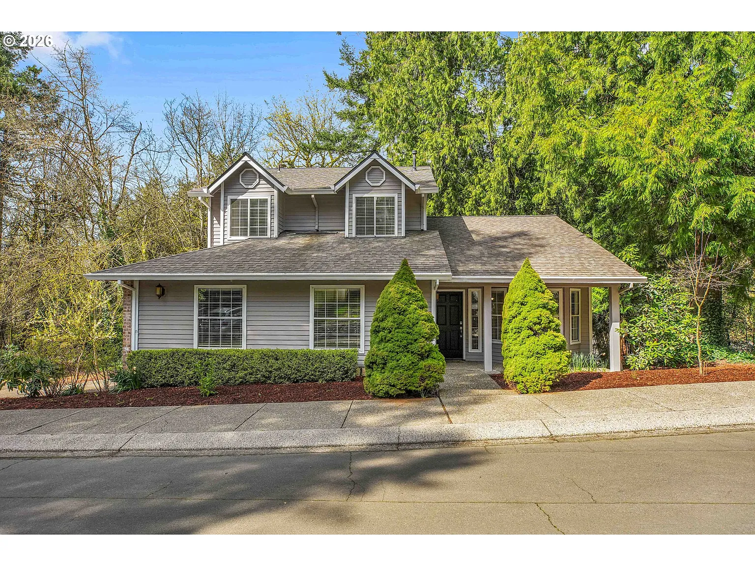 Lake Oswego Hideaway. Beautifully maintained and thoughtfully designed, this 1,931 sq ft home offers 3 bedrooms, 2.5 baths, and a 2-car garage, tucked away on a quiet cul-de-sac backing to nature. Enjoy the perfect blend of comfort, privacy, and convenience in a highly desirable setting. Step inside to soaring vaulted ceilings that highlight the formal living room, flowing seamlessly into the formal dining area with peaceful, tree-lined views. The well-designed floor plan offers both functionality and elegance throughout. The kitchen is both stylish and practical, featuring slab granite countertops, an undermount sink, a pantry, stainless steel appliances, and rich hardwood flooring. The open-concept great room flows effortlessly into the family room, complete with timeless wainscoting, a cozy gas fireplace, and an eating nook—ideal for everyday living or entertaining. Upstairs, the spacious primary suite serves as a private retreat with a walk-in closet featuring built-in organizers, dual sinks, a walk-in shower, and a jetted soaking tub perfectly positioned to capture serene, wooded views. Two additional bedrooms offer charming window seats, adding warmth and character. Situated on a .23-acre lot, the outdoor space offers multiple areas for enjoyment, including a private, fenced section, an open wooded area, and a spacious deck overlooking a tranquil, wooded backdrop—perfect for relaxing or hosting. Surrounded by mature landscaping, this traditional-style home offers privacy while remaining conveniently located within walking distance to top-rated Lake Oswego Middle and High Schools, as well as nearby trails and parks. NO HOA! Don’t miss your opportunity to live in this sought-after community.