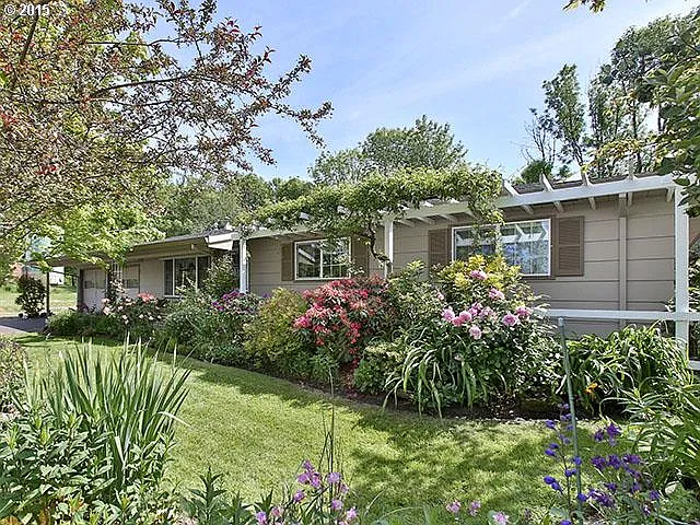 OPEN HOUSE Saturday 5/16 12PM-2PM Exceptional private location, 1 level home featuring, light and bright open floor plan, country kitchen w/eating nook, skylight, hardwood floors, updated bathrooms, large living room. A gardeners paradise with pond, water feature, large vaulted covered deck, newer roof, AC, Lake Oswego Schools.