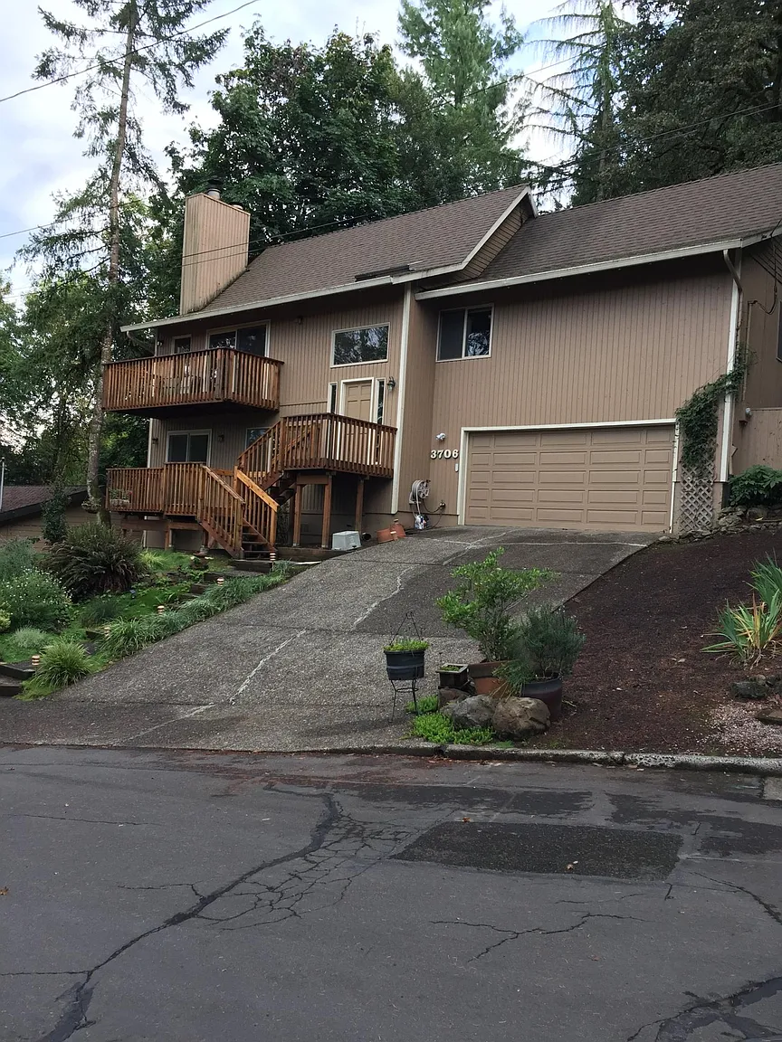 Home in a quiet neighborhood with no through streets. House is a split level with two bedrooms on the main floor. Multi-level decks. Dinning room and living room are attached with a wood burning fire place. Separate kitchen with gas stove. Terraced backyard with spacious deck. Large master bedroom with on suite bathroom and walk in closet. Second bedroom and full bath located on main level as well. Spacious daylight family room with wood stove, 3rd bedroom, half bath and laundry room. Washer and dryer in included. 2 car garage with touch pad entrance. Location: Neighborhood is across from Mary S. Young State Park, close to shopping and public transportation. Highly desirable schools: Cedar Oak Primary, Rosemont Middle School and West Linn High School. Special Terms: No smoking in house or on premises, garbage to be paid by owner, all other utilities paid by tenant. Pets okay with pet deposit. Proof of renter's insurance required before move-in. Please call/text/email for further information or to view home. Owner to pay garbage