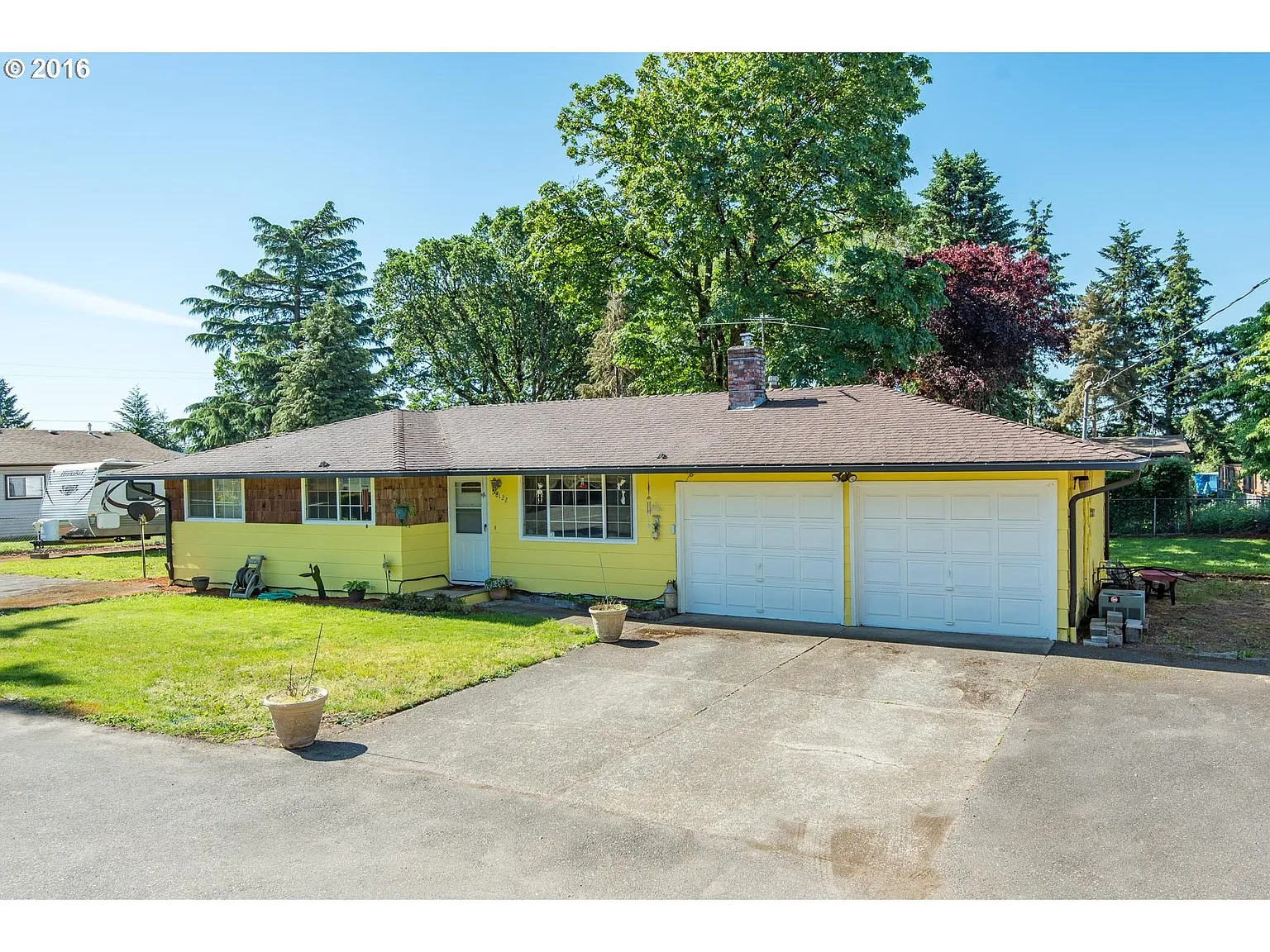 Great home for the investor or first time home buyer. One level located at the end of a quiet dead-end street. 3 bedrooms & 1 1/2 baths. Large living room with gas fireplace. Hardwoods under the carpet. Updates include vinyl windows, newer exterior paint, cedar shake, water heater, plumbing, front door and gutters. Ample parking inc plenty of room for RV. Refrigerator included, AC.