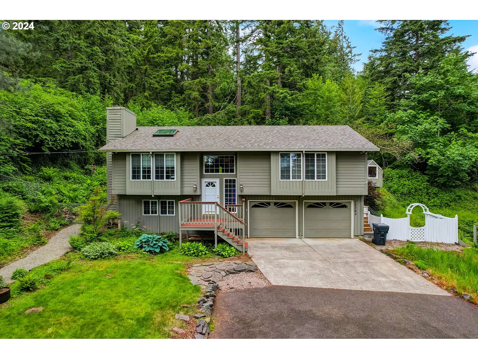 Welcome to this serene retreat, where vaulted ceilings greet you with a haven of natural light streaming in from walls of windows and skylights. Step outside onto the patio and immerse yourself in the lush greenery, with majestic cedar and pine trees, delicate ferns, vibrant azaleas, and more. A large detached shop out front awaits your creativity, showcasing a 40'x24' indoor space and 3 garage doors that offer convenience and versatility for your storage or workshop needs. Wake up to awe-inspiring views of Mt St. Helens from the master and 2nd bedroom, while Mt Hood greets you from the lower driveway. Inside, an open kitchen seamlessly connects to the dining, office, and living room, providing ample space for gatherings and relaxation. Cozy up by the pellet stove on cool evenings, surrounded by the warmth of a wood-burning fireplace that feels authentic yet easy to maintain. Enjoy movie nights with the immersive experience of built-in surround sound speakers. The RV parking spot makes storing a camper a breeze. Recent updates, including kitchen counters, flooring, and bathrooms, ensure modern comfort and style, while a new roof installed in 2023 adds durability and peace of mind. With meticulous care evident in every detail, this home invites you to create memories in your own sanctuary.
