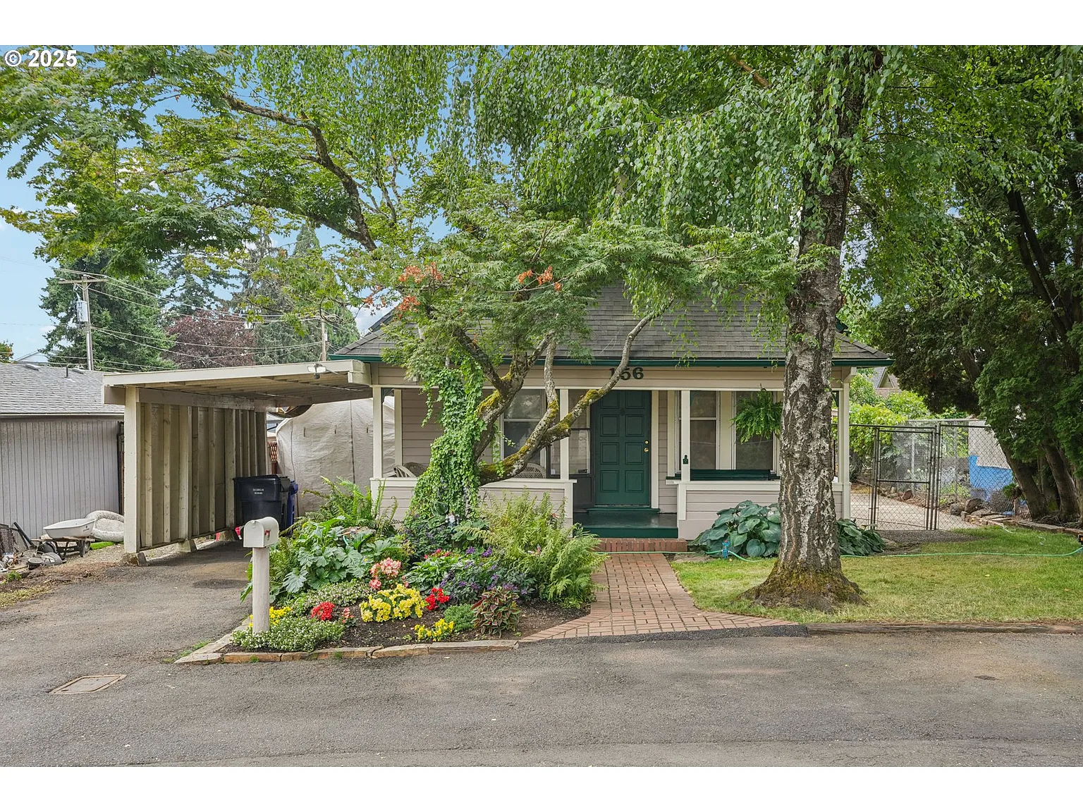Super cute home with an amazing yard on a quiet Oregon City street! Close to Singer Creek Park, Stafford Park, the new police station, and Gardiner Middle School. Minutes to all the other excellent amenities of the desirable Oregon City area. Remodeled kitchen overlooks the cozy living and dining room spaces. Den off the living room perfect for additional sitting area or home office. Primary bedroom on the main level next to full bath. Upper level offers two loft-style bedrooms. Laundry room doubles as mud room and storage on the backside of the home. Head out to the large front porch to enjoy the neighborhood go by and all the fantastic plantings in the front yard. Stellar backyard with gorgeous newer deck, fencing, tool shed, and fire pit. Thoughtful plantings and care make this backyard an excellent outdoor living space. Plenty of parking in the driveway, carport, and additional covered parking area. Perfect to store projects, boat, etc. Other side of the home offers a spacious fenced area perfect as a dog run. Absolutely a must see!