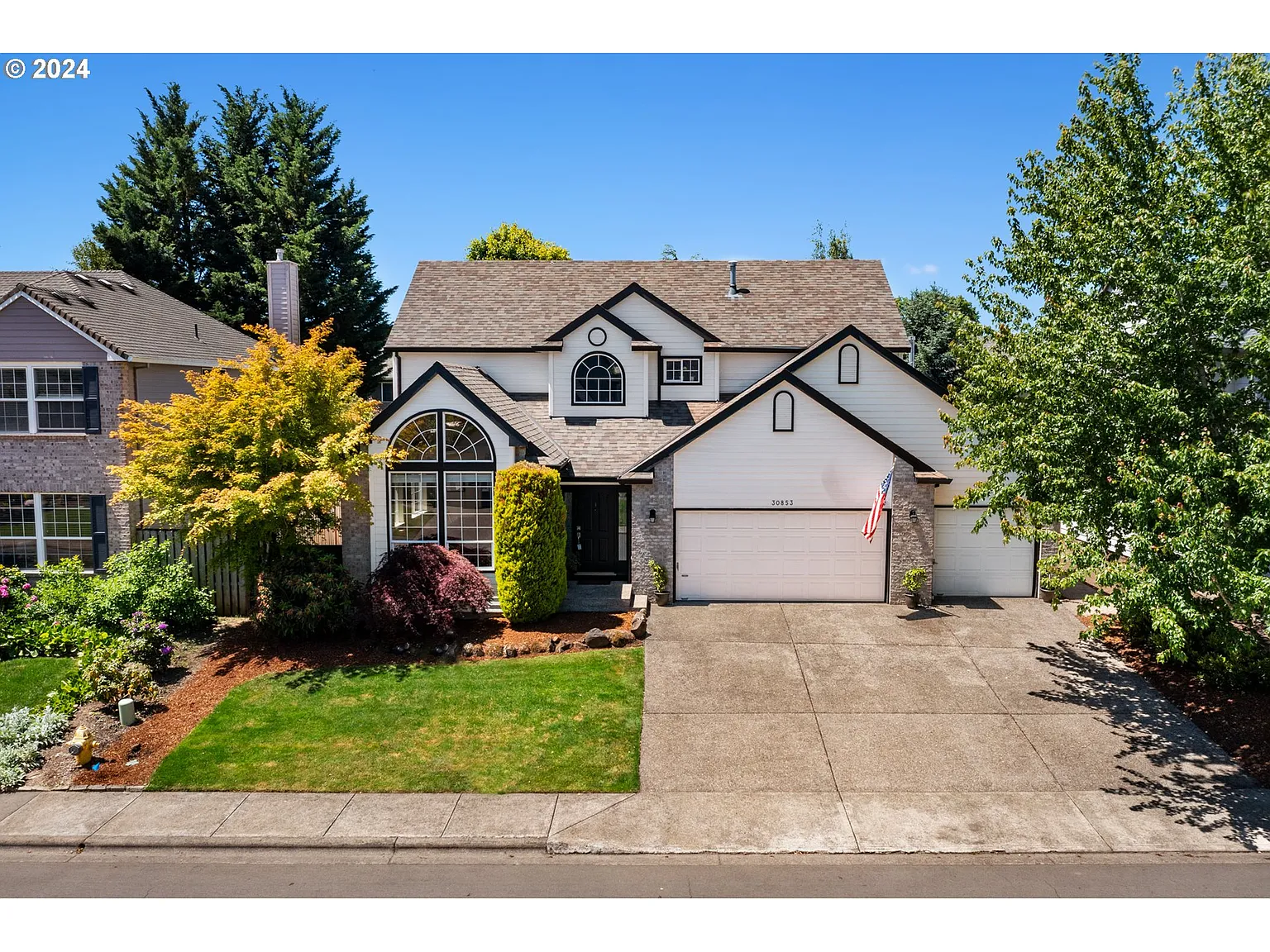 Welcome to your dream home in the heart of Wilsonville's charming Morey's Landing neighborhood! Step inside to discover a well-maintained interior with new flooring throughout and freshly painted walls, the vaulted ceiling in the living room enhances the sense of space, creating an airy ambiance that flows seamlessly from room to room. The well-appointed kitchen features sleek appliances, ample cabinetry, and a convenient island and breakfast nook. Outside, just beyond the covered deck, your large private backyard has newly refreshed landscaping and irrigation in the front and back yards and the gravel area intended to water garden boxes. Retreat upstairs to the comfort of your generously sized bedrooms, including a master suite complete with ensuite bath and walk-in closet. Need a dedicated workspace? The versatile office/den on the main level provides the ideal setting for productivity without sacrificing comfort. Don't miss your chance to experience the best of suburban living in this exceptional Wilsonville residence.