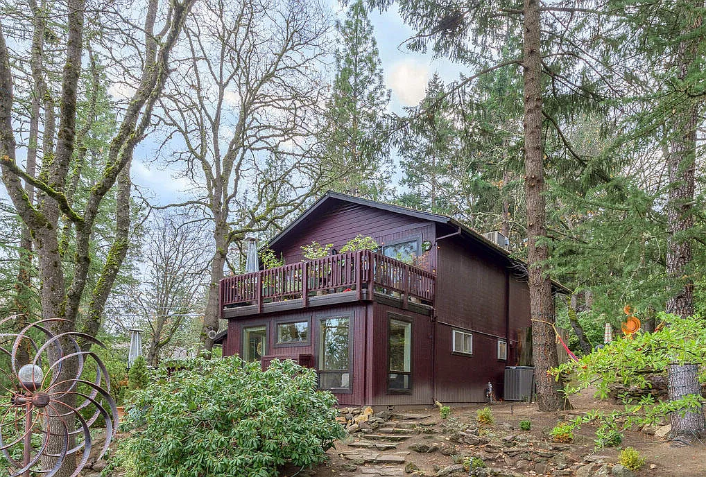 Sweet home in a beautiful, private wooded setting above Southern Oregon University. This home sits on an oversized lot, reminiscent of a park complete with mature landscaping, winding pathways, patios & multiple decks. A well cared for home with two of three bedrooms quite sizable, one ensuite bathroom and one graced with a gas fireplace flanked by windows capturing the nature outside. The open floor plan upstairs includes a generous kitchen with tons of light & views, a bay window and a bar counter for entertaining. There are multiple decks, including one off the dining room with views of Grizzly peak, a newly constructed one off the master with a hot tub and one off the living room for more private entertaining leading to a spacious patio. Plenty of built-in storage and closets complete this warm and comfortable home.