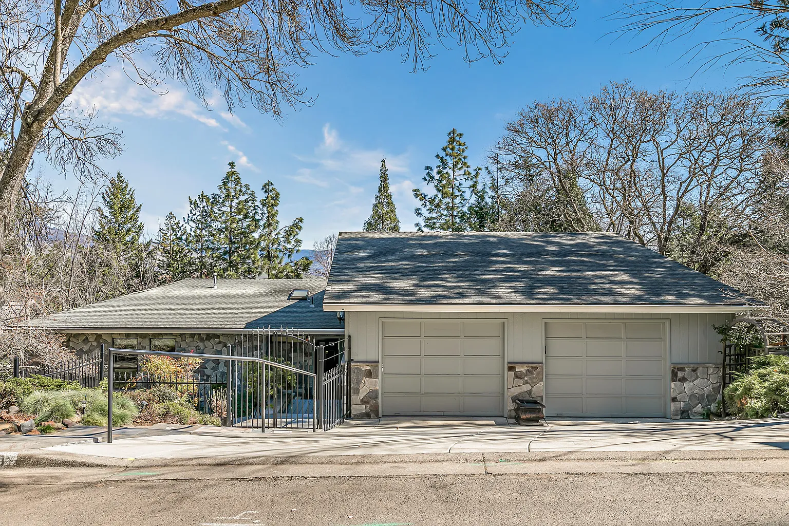 Spacious custom home in a private natural setting of established neighborhood, centrally located above the boulevard within a five-minute walk to Ashland's trail system! Main level with wrap-around deck access from vaulted great room and dining area with gas fireplace, kitchen with solid surface dining counter and island with prep sink, all stainless appliances including five-burner gas range with convection oven, laundry mudroom, oversized two-car garage with two guest bedrooms with closets, full guest bath with double vanity and tub shower, and main-level primary bedroom with walk-in closet, deck access, and full ensuite bathroom with double vanity and shower. Expansive level family room potential guest apartment with French doors to private patio, wet bar or kitchenette with double sink, plus a fourth bedroom or second primary with closet and full ensuite bathroom with shower. Mature trees and plantings, slate tile patio, raised beds, and TID irrigation. Inquire for details!
